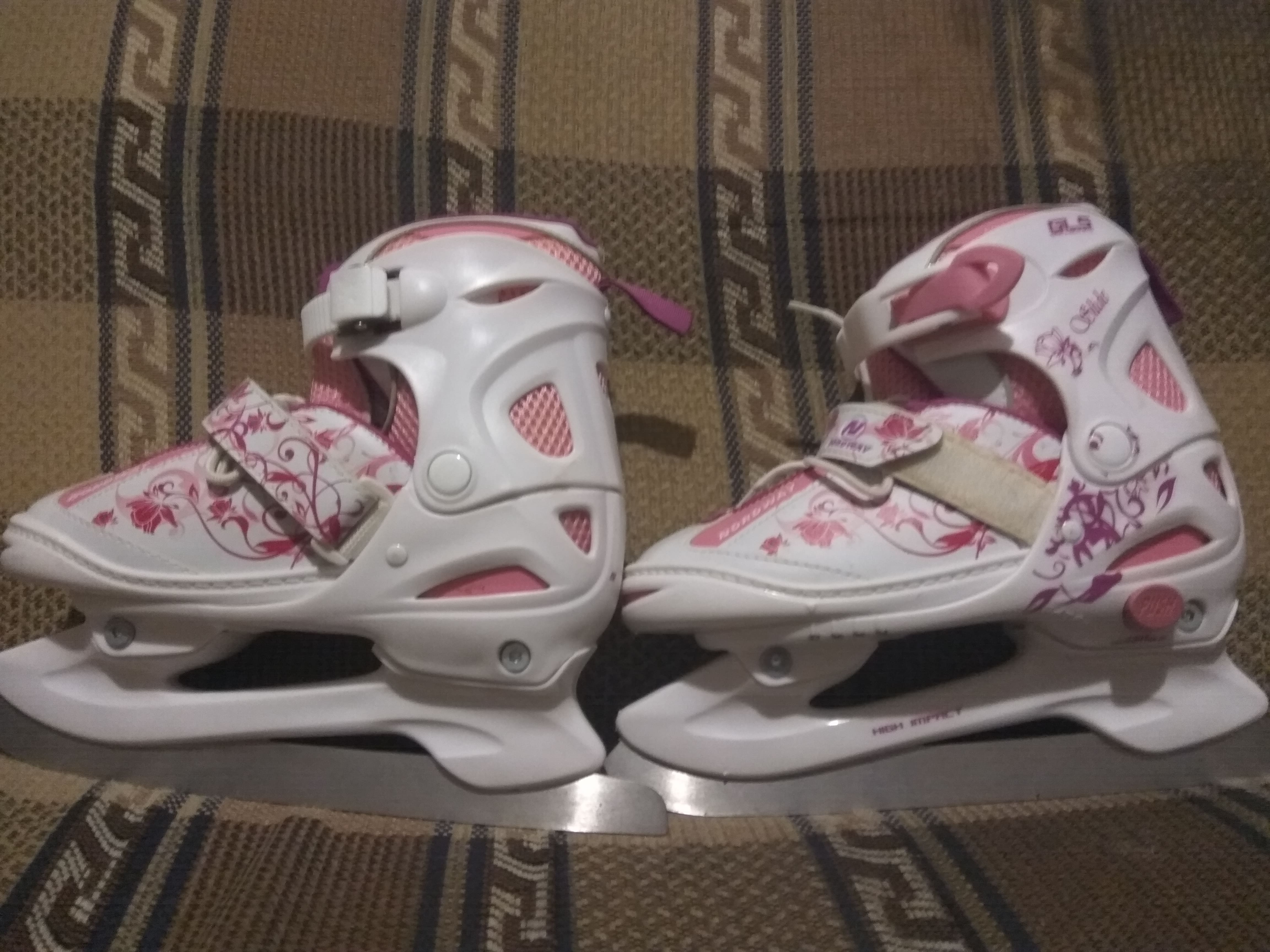 Коньки детские женские переменного размера 34-37. В отличном состоянии, пользовались один сезон. Шнуровка+липучка. Зубья в передней части. наименование NORDWAY SLDG-WP-34. Цена 1000 рублей.