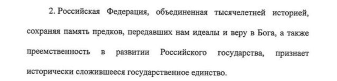 "...Что-то с памятью моей стало, Все, что было не со мной - помню". https://187011.selcdn.ru/thumbnails/photos/b/a/t/bat53f767f5c0b50_1024.jpg Вера в Бога и есть вера в идеал. Значит речь идёт не о религиозных идеалах. а кроме религиозных идеалов у нас были только коммунистические. Выходит, в Конституцию возвращают коммунистическую идеологию?!