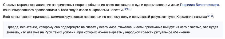 То есть мне надо привести примеры, когда процессы дозревали до готовности? 1. Российская империя, судебные процессы по делам Бейлиса, Засулич Давление, которое государство оказывало как на присяжных, так и на судей, полицию и защиту, было несоизмеримо больше того давления, которое сейчас оказывается на какую-нибудь учительницу с целью заставить ее проголосовать за то, что нужно или на вас (оно вообще оказывается на вас?) Прочитайте, пжл, слова Анатолия Федоровича Кони, специально для вас выделила: 24 января 1878 года В. И. Засулич пыталась убить выстрелами из пистолета петербургского градоначальника Ф. Ф. Трепова[45]. Это преступление получило широкую огласку, общество с сочувствием отнеслось к поступку террористки[46]. Следствие по делу велось в быстром темпе, с исключением всякого политического мотива[47], и к концу февраля было окончено[48]. Вскоре А. Ф. Кони получил распоряжение министра юстиции К. И. Палена назначить дело к рассмотрению на 31 марта[48]. Граф Пален и Александр II требовали от Кони гарантий, что Засулич будет признана присяжнымивиновной, Анатолий Фёдорович таких гарантий не дал[49]. Тогда министр юстиции предложил Кони сделать в ходе процесса какое-либо нарушение законодательства, чтобы была возможность отменить решение в кассационном порядке[50]. Анатолий Фёдорович ответил[50]: Я председательствую всего третий раз в жизни, ошибки возможны и, вероятно, будут, но делать их сознательно я не стану, считая это совершенно несогласным с достоинством судьи! Перед присяжными заседателями Кони с согласия сторон поставил следующие вопросы: первый вопрос о том, «виновна ли Засулич в том, что решившись отомстить градоначальнику Трепову за наказание Боголюбова и приобретя с этой целью револьвер, нанесла 24 января с обдуманным заранее намерением генерал-адъютанту Трепову рану в полости таза пулею большого калибра; второй вопрос о том, что если Засулич совершила это деяние, то имела ли она заранее обдуманное намерение лишить жизни градоначальника Трепова; и третий вопрос о том, что если Засулич имела целью лишить жизни градоначальника Трепова, то сделала ли она все, что от неё зависело, для достижения этой цели, причём смерть не последовала от обстоятельств, от Засулич не зависевших»[51]. Вердикт присяжных заседателей Засулич был: «Нет, не виновна»[52]. А. Ф. Кони предложили признать свои ошибки и уйти добровольно в отставку[53], но отказался, заявив, что на нём должен решиться вопрос о несменяемости судей[54]. «Если судьи России узнают, — сказал он, — …что председателя первого суда в России, человека, имеющего судебное имя, занимающего кафедру, которого ждёт несомненный и быстрый успех в адвокатуре и для которого служба — далеко не исключительное и неизбежное средство существования, — достаточно было попугать несправедливым неудовольствием высших сфер, чтобы он тотчас, добровольно, с готовностью и угодливой поспешностью отказался от лучшего своего права, приобретённого годами труда и забот, — отказался от несменяемости, то что же можно сделать с нами»[55]. 2. Во Франции есть пример дела Дрейфуса 3. В Штатах "восстание детей в Бирмингеме" 4. Макдональдс построен коммивояжером-неудачником после 50 лет Блин, да жизнь полна примеров этому. Вот обратный пример, история о подчинении. https://yandex.ru/video/preview?fil...е» (2012) — триллер, драма, HD&path=sharelink У нас у всех лова