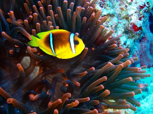 Рыбы клоуны живут только в анемонах. Мультик про Немо смотрели? Вот это именно они. Малень кие и очень храбрые рыбки, которые всегда защищают свое гнездо!