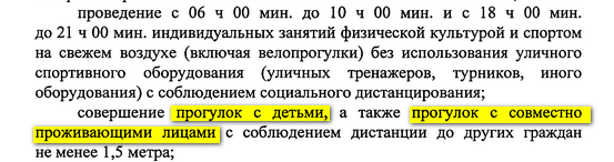 нельзя с посторонними все понимают по своему. перечитайте документ, посмотрите вокруг, и решите как нужно. если живете в мкд, по дороге на улицу уже положено, и маски, и перчатки надеть, потому как место общего пользования в здании. собственно на улице - нет. чем считать детскую площадку забитую детьми и их родителями, я например не знаю. но я бы в здравом уме и в сиз не подходил даже близко...