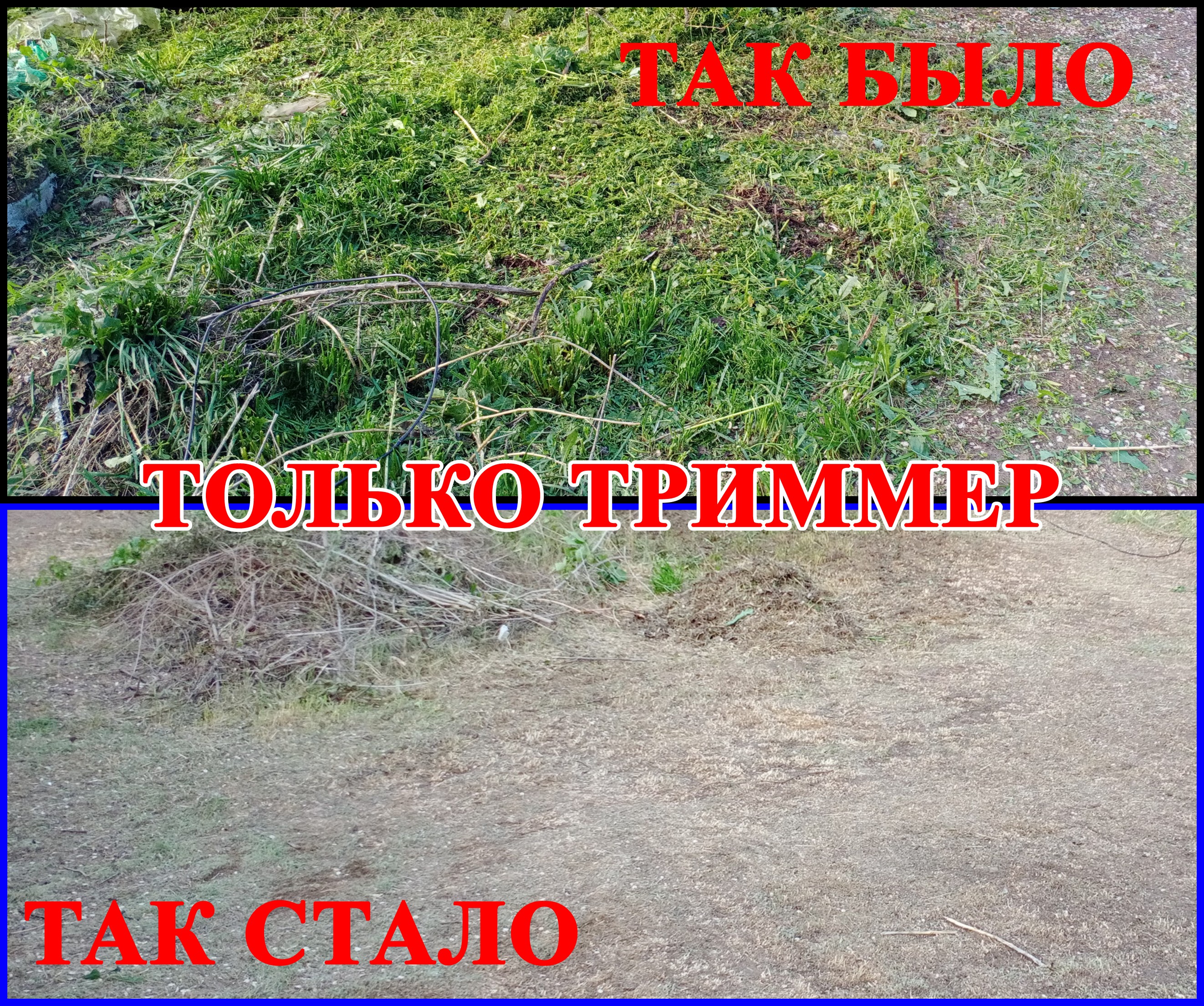 @NeonKIR, похожая ситуация. Вот результат применения раундапа (из отдела "Всё для сада-огорода") и какого-то универсального средства (из Леруа Мерлен). Зачем применял два средства: после распыления раундапа ночью прошел дождь и я решил, что его смыло. Трава начала желтеть, но не очень быстро. Через неделю-полторы купил в Леруа за 93-98 рублей другое средство. Продавец спросила для какого вида сорняков необходимо средство, но т.к. я не знаю как они называются, посоветовала универсальное. На картинке прошло 2 недели после применения второго средства. На дальнем плане, что было (примерно). Спойлер