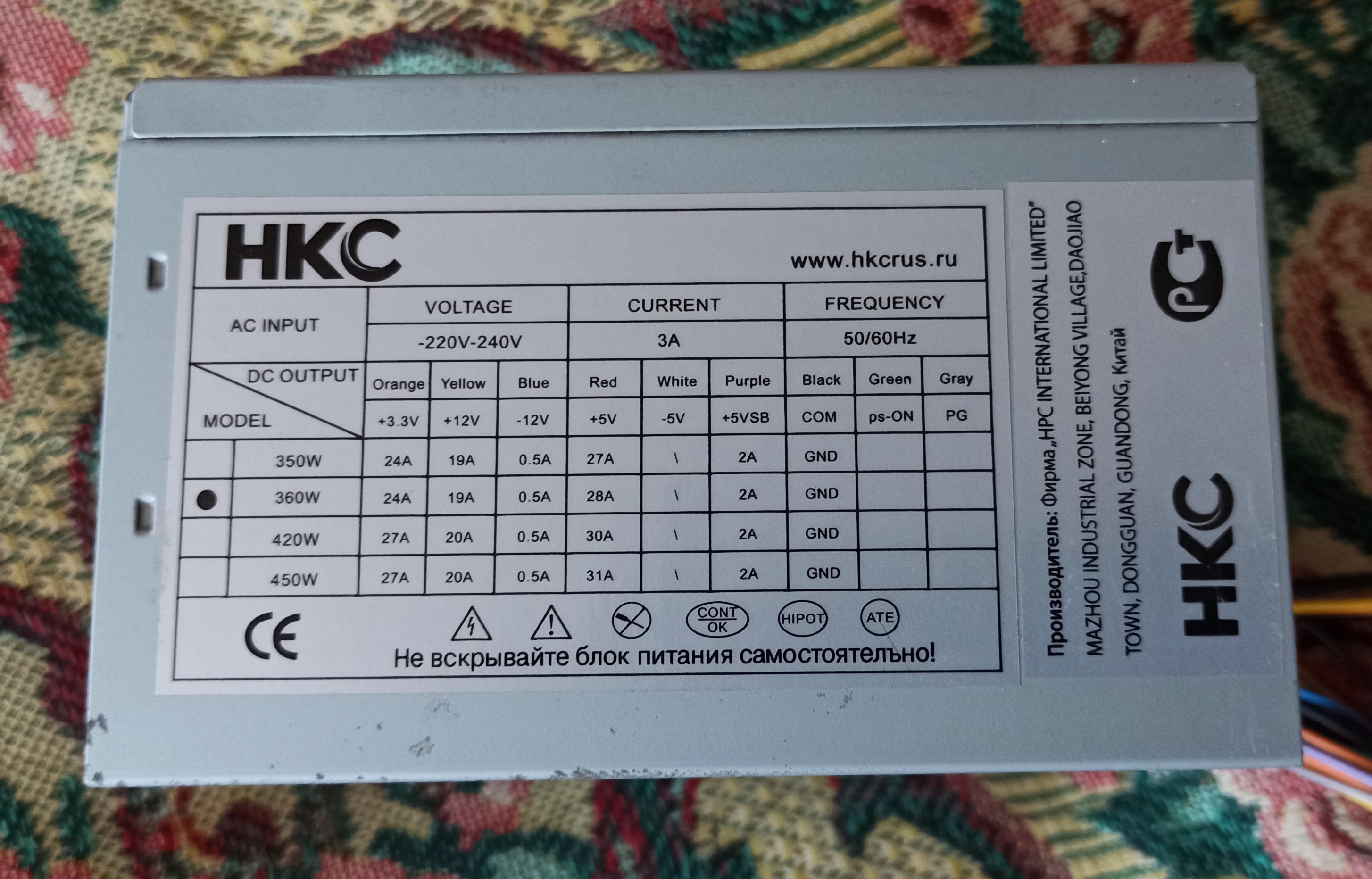 Блок питания HKC 360W. Работоспособность-хз.