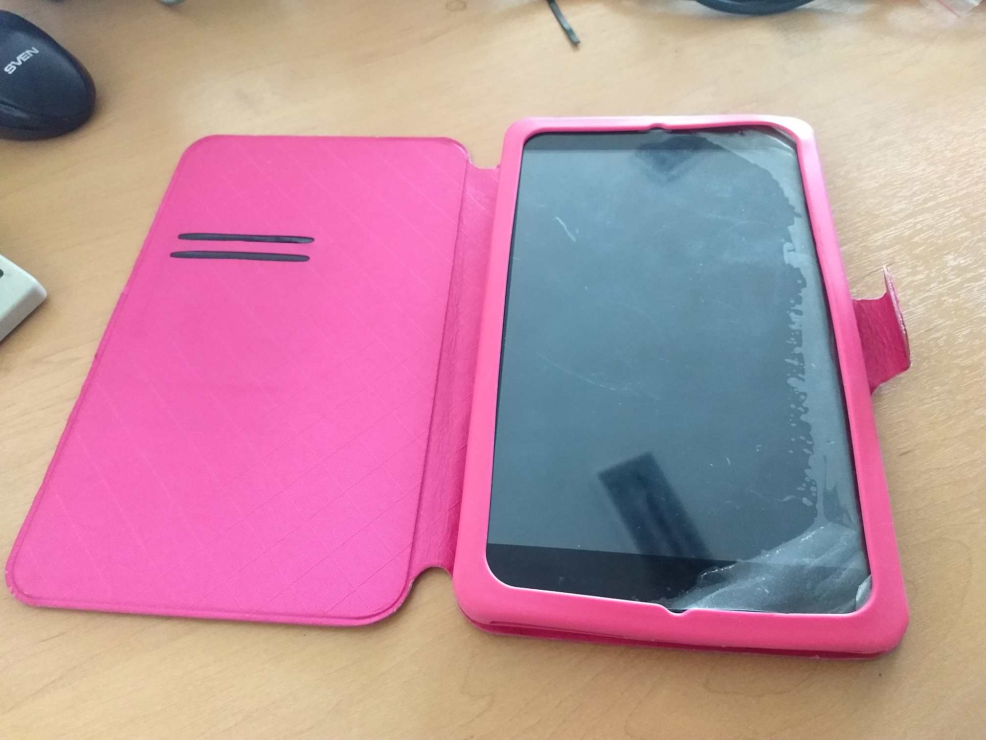 Нашелся у планшета косяк.... Чет даже раньше внимания не обратил. Детеныши умудрились потерять кнопки... ХЗ как. Т.е. сами пластиковые накладки (микрики внутри на месте и нажимаются отлично, например зубочисткой). Можно заморочиться и отлить кнопки из силикона, например. Ценник 1500. Если заберете сегодня то за 1100 отдам .