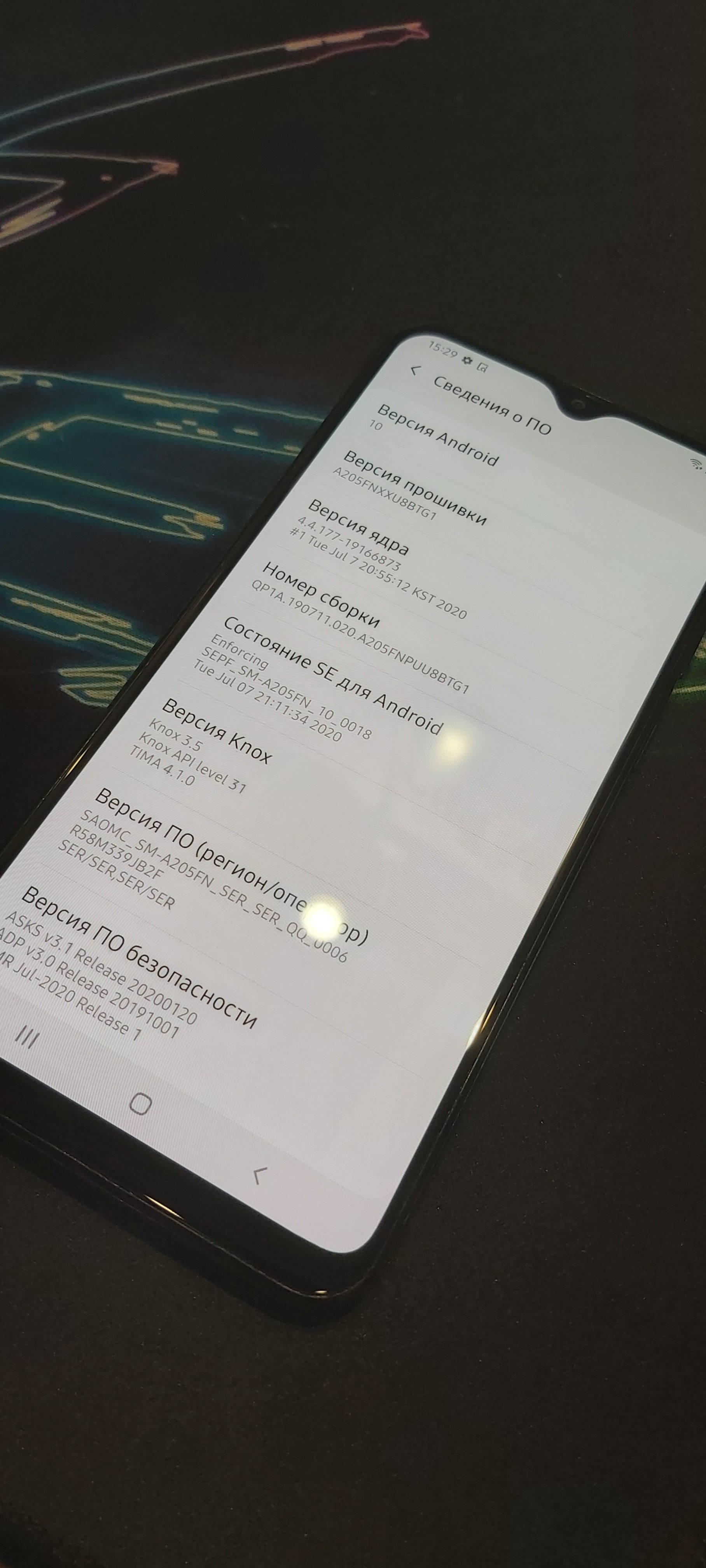 Samsung a20 32 гига своей памяти и 3 гига оперативной. Дисплей 6.4 дюйма, очень приятные цвета, прям глаз радуется) Десятый андроид! Очень приятный телефон, в руке лежит просто превосходно. За счёт неплохого процессора и достаточного количества оперативки, все работает крайне шустро) Полный комплект(коробка, бумажки, адаптер, шнур, наушники) Состояние очень хорошее, на задней крышке есть следы эксплуатации, дисплей практически идеал Менялся аккумулятор, больше для самоуспокоения, казалось что не так держит заряд Для форума 6500