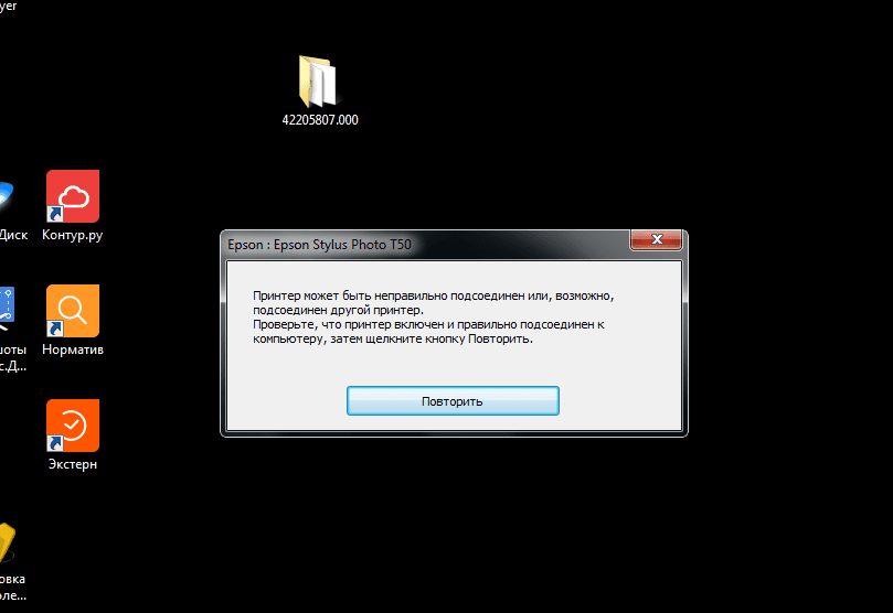 Уважаемые Мегамозги нашего форума, пжл, помогите! Дано: Ноутбук Асус система Виндоус 7 Проф, принтер Эпсон Стилус Фото Т50. В принтере поменяла ориганльные картриджи на пзк, вроде он все принял - капля не горит. Дрова с диска установочного на ноут устанавливала - все нормально устанавливается, но в конце выдает вот такую надпись- см вложение. Естественно все кабели подключены и рабочие входы USB на ноуте.