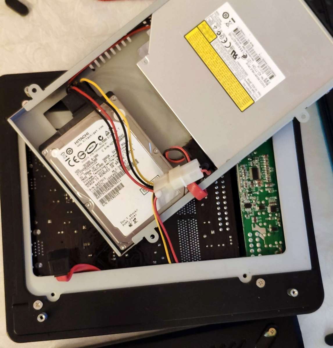 Т.е. подойдёт аппарат с 2.5" SATA HDD и ноутбучным SATA сидиромом, вместо которого можно поставить салазки с 2.5" винчестером.