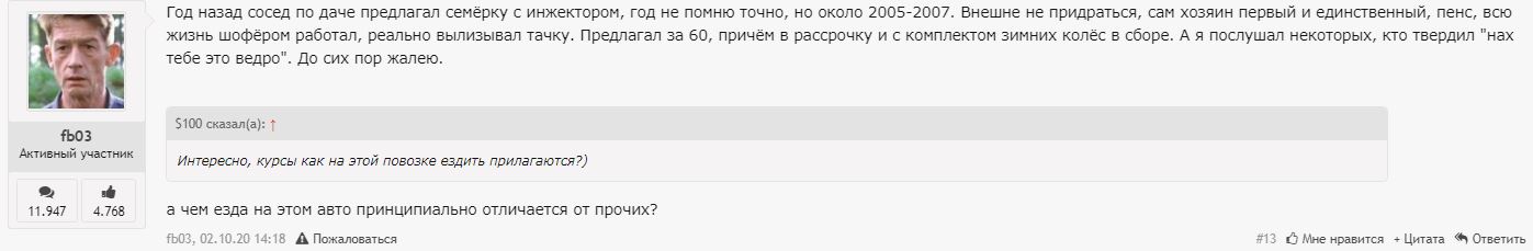нормальный человек никогда бы даже не задумался о покупке такого ведрища) а ты не только задумался, но еще и жалеешь,что не купил) и пару постов ниже даже говорил, что тачка для передвижения, а не для понтов)