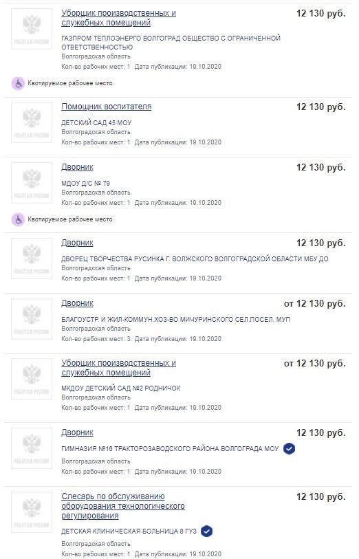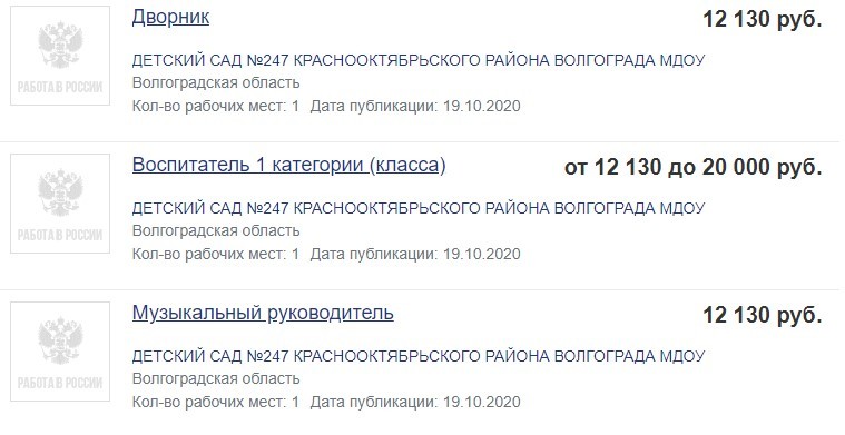 Если вакансия есть в ЦЗН, то директору придется каждому соискателю делать письменный отказ с мотивировкой - это закреплено законодательно. Чаще всего у вакансий, на которые не хочется никого принимать, есть ограничение, что она "зарезервирована" для инвалида (квота). Впрочем, дет. сад - не очень хороший показатель. Вот получше: