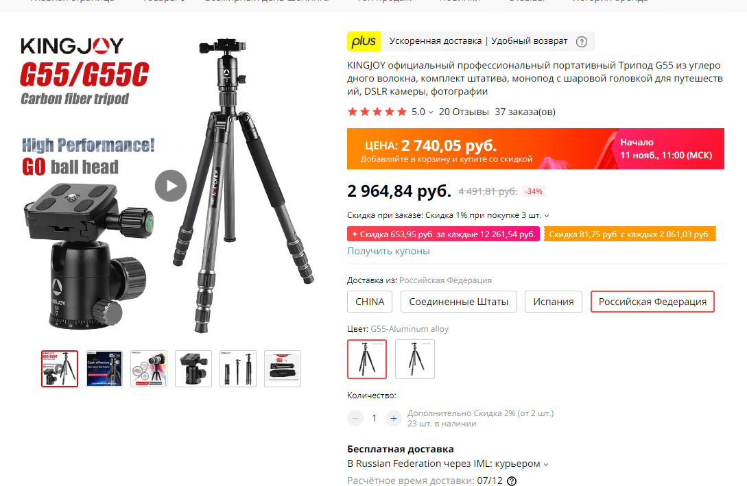 @UncleSam, да оно понятно, что чем дороже и тяжелее, тем лучше. Но для моего использования будет вполне, я надеюсь. Сейчас вообще самый дешевый с алихи, за 800 р - вот его действительно чуть задел и все, можно пойти чай пить, как раз за это время придет в порядок. Еще и заваливается, да и сделан хреново. Посмотрим, что в итоге получится. Этот хоть уже на что-то нормальное похож, максимальную высоту ставить не планирую, хоть и хотелось бы. Прекрасно понимаю ограничения и недостатки данного бюджета. На 70% будет нормально держать - уже вполне.