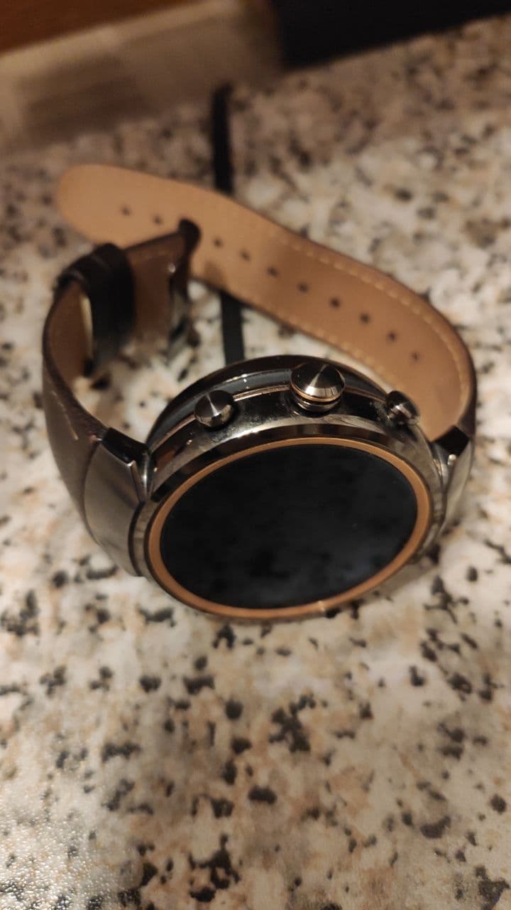 Мало б/у, в хорошем состоянии. В комплекте часы и зарядка. Без иллюзий, живут день. Коричневый кожаный ремешок. Хотелось бы тыщ 7
