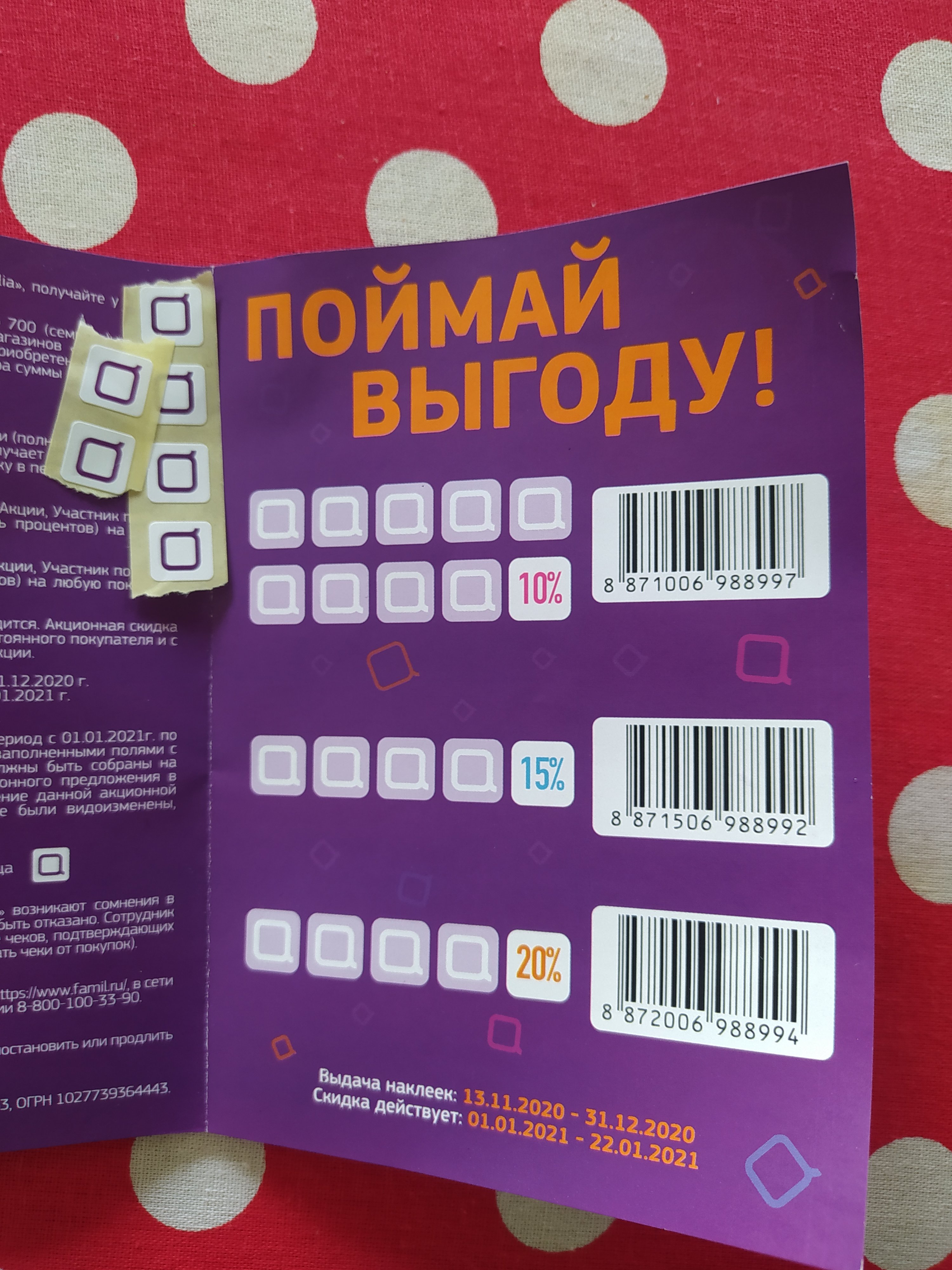 @dk-34, определенное количество наклеек даёт право на скидку в вышеуказанном магазине до 22 января 9 наклеек -10% 13 наклеек -15% 17 наклеек -20%