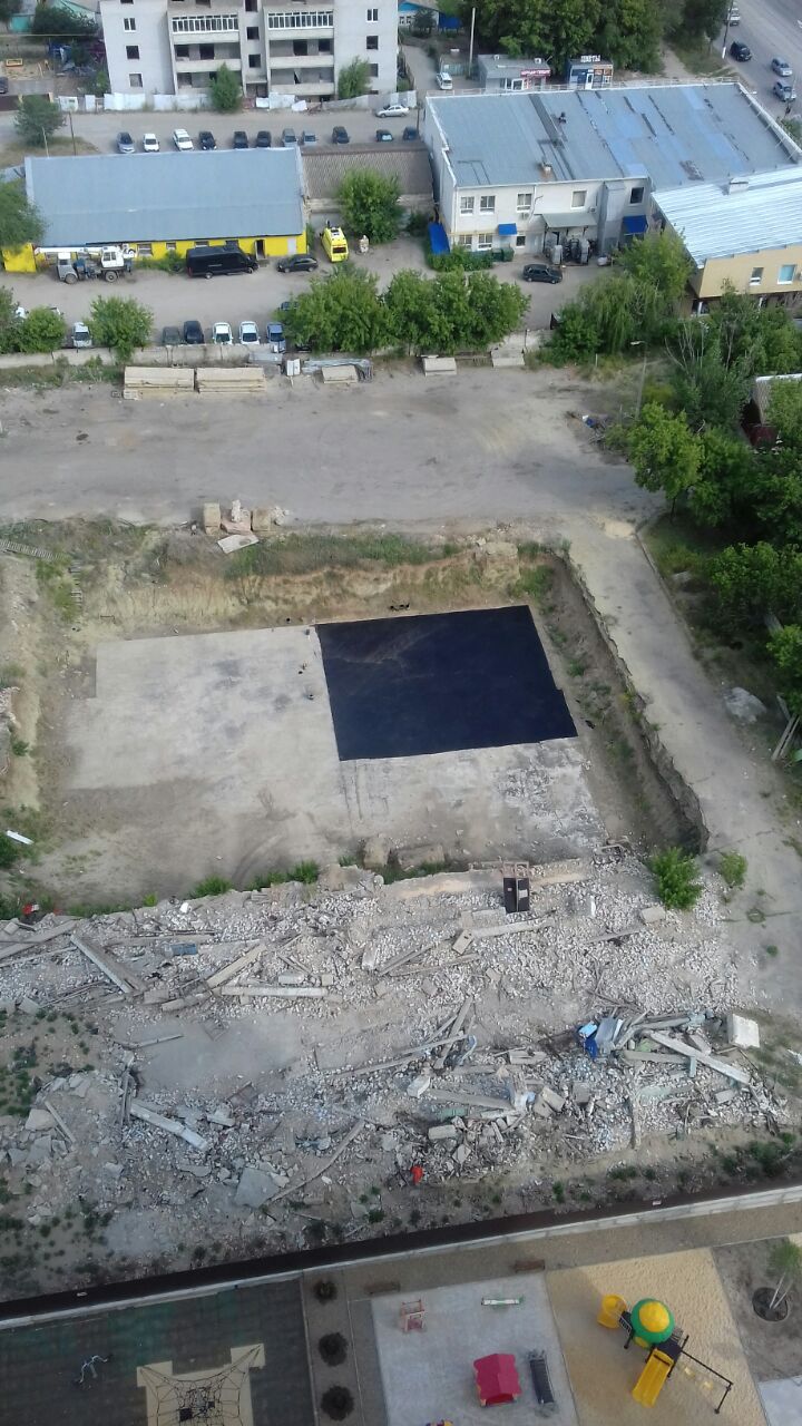 Этот т.н. ЖК у меня под окнами. За 2 года, что я тут живу там ничего не изменилось. Работ никаких не ведётся. Позапрошлым летом приехали рабочие и намазали мастикой плиту. Это последняя операция на объекте. Или речь о какой-то другой стройке?
