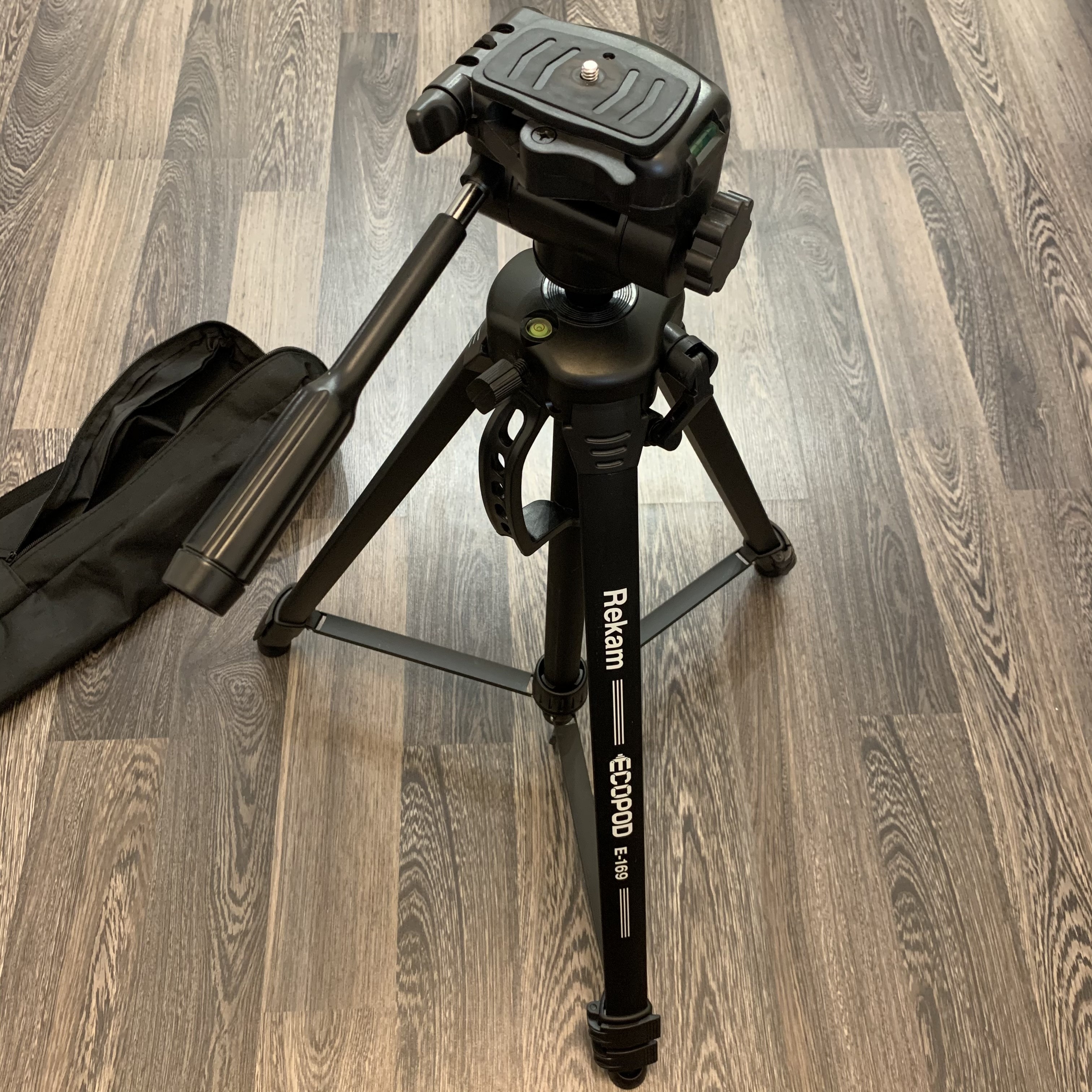 Штатив-трипод REKAM Ecopod E-169, изготовленный из качественного материала, прекрасно подойдет как начинающим фотографам, так и профессионалам. Вы всегда сможете брать его с собой, так как он не обременит своим весом 1250 г и длиной в сложенном виде 610 мм. Чехол с крюком, входящий в комплект, сделает устройство еще более мобильным. Его высоту лучше всего подбирать по росту фотолюбителя. Данная модель имеет максимальную высоту 1620 мм. Три секции штатива-трипода REKAM Ecopod E-169 сделают его более устойчивым, а резиновые опоры на них предотвратят скольжение устройства. Камера устанавливается на специальную площадку, на которой крепко и надежно закрепляется, а ручка фиксирует положение и обеспечивает плавное наведение. Благодаря этому получаются прекрасные, четкие и качественные фотографии.
