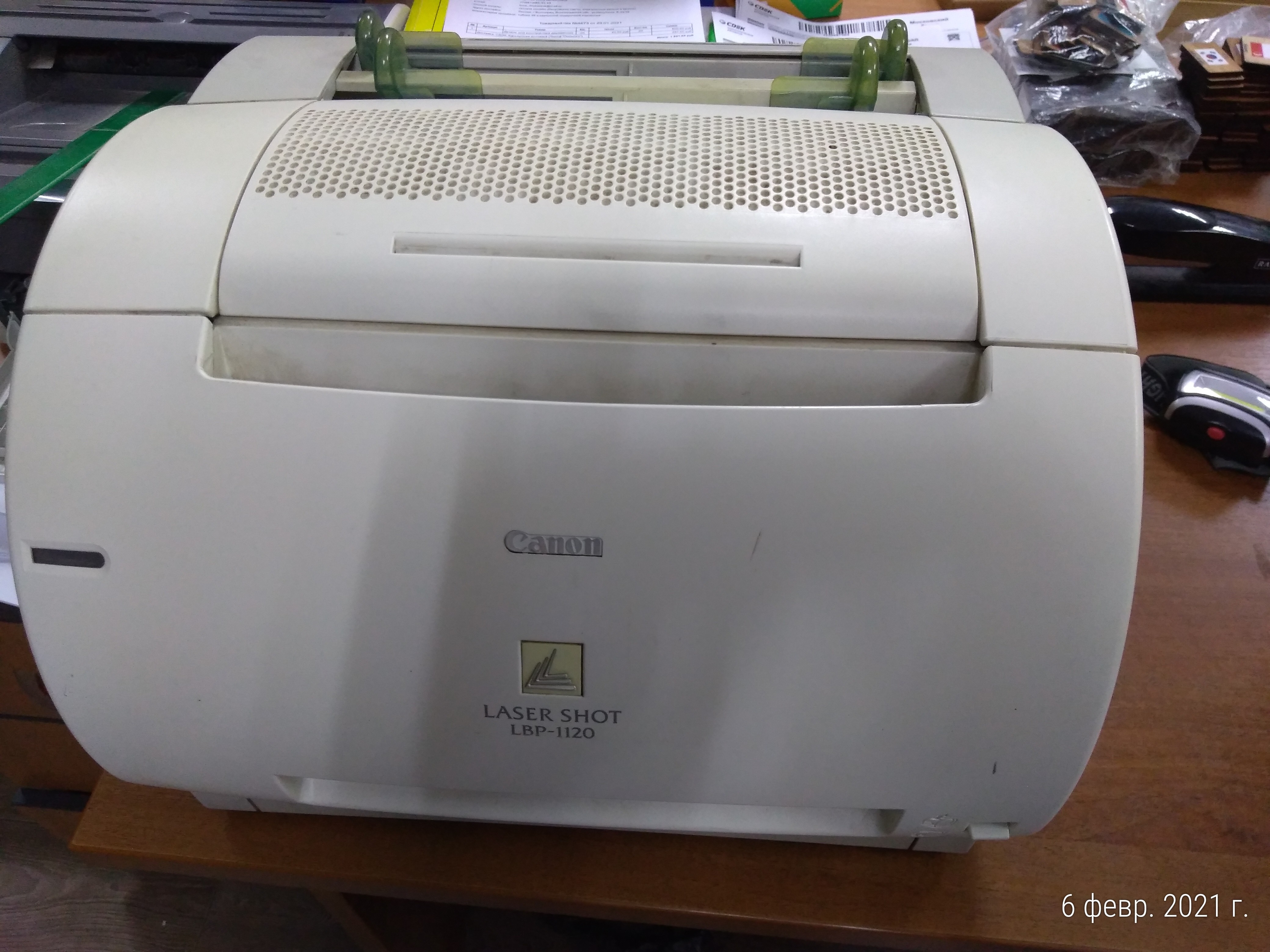 Отдам лазерный принтер Canon LBP-1120. Работоспособность неизвестна. При включении в розетку индикатор загорается, шестеренки/валы крутятся. Картридж есть (его состояние и заправка тоже не известна). Проверить нет возможности - с новыми версиями Windows не работает (драйвер только 32 bit)! Можно забрать в рабочие дни до 17.00 ч на ул. Майкопская, 5.
