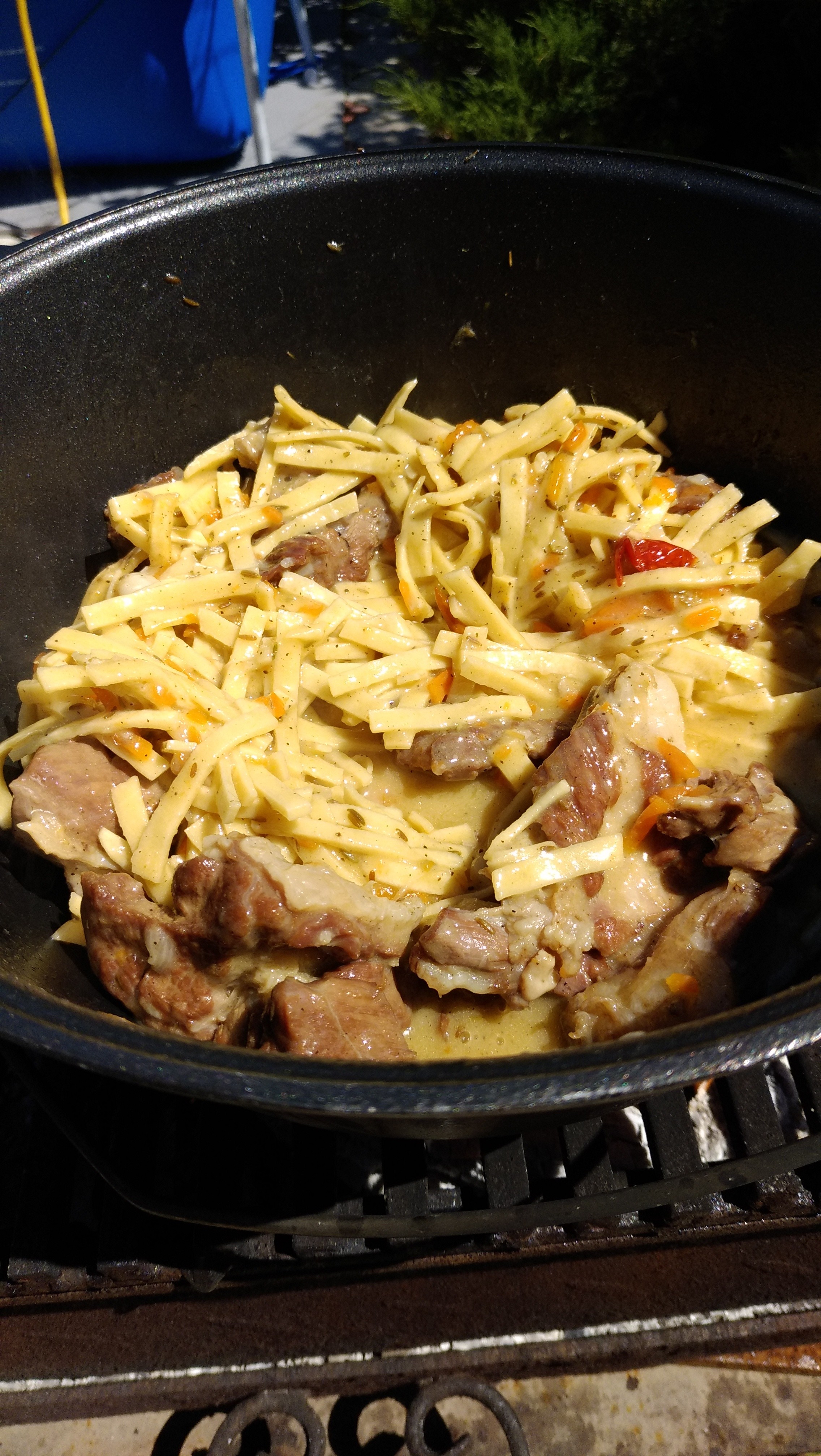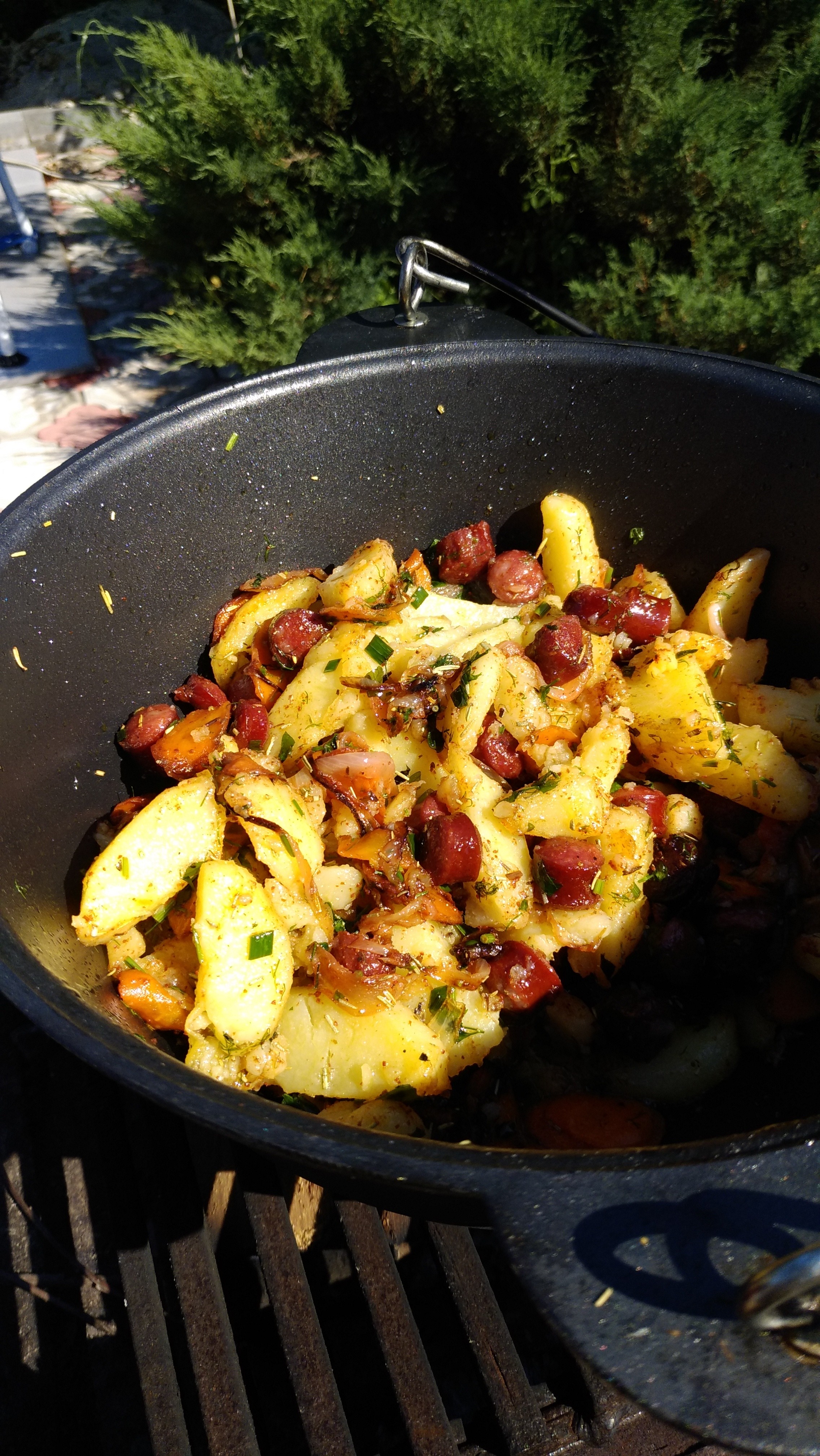 Я плов в казане на костре готовлю. Руки дойдут, хочу шурпу приготовить и блюдо «не помою название, надо гуглить» там молодой картофель целиком обжаривается, потом овощи мясо и к ним картошку и всё вместе доготавливается.