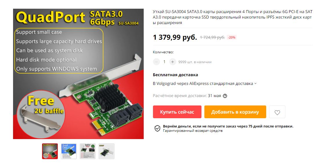 Я дал конкретную ссылку на конкретный товар. Там ДВА SATA..Ещё в марте он стоил меньше 500 рублей, а сейчас почти 1000. Перейди по ссылке из своего кабинета на купленный товар. Сильно удивишься. Либо товар будет недоступен, либо цена будет >1300.