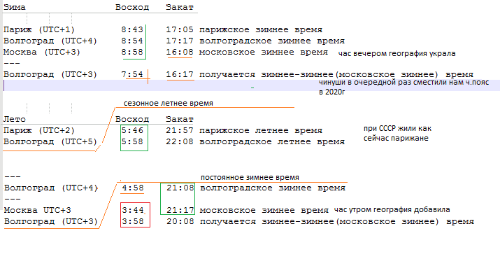 Жеванный крот. Очередная серия марлезонского балета. Гражданин. В Парыжах часовой пояс смещен относительно поясного времени на 1 час зимой и на 2 часа летом. Тяжелое наследие так сказать немецкой оккупации. +3 это волгоградское зимнее время, +4 - волгоградское летнее время оно же декретное из 1930 когда всех принудительно подвинули на час вперед. +4/+5 это небольшой промежуток в 80-х, а не норма. Палящее солнце в 8 вечера летом - ну его нахрен.