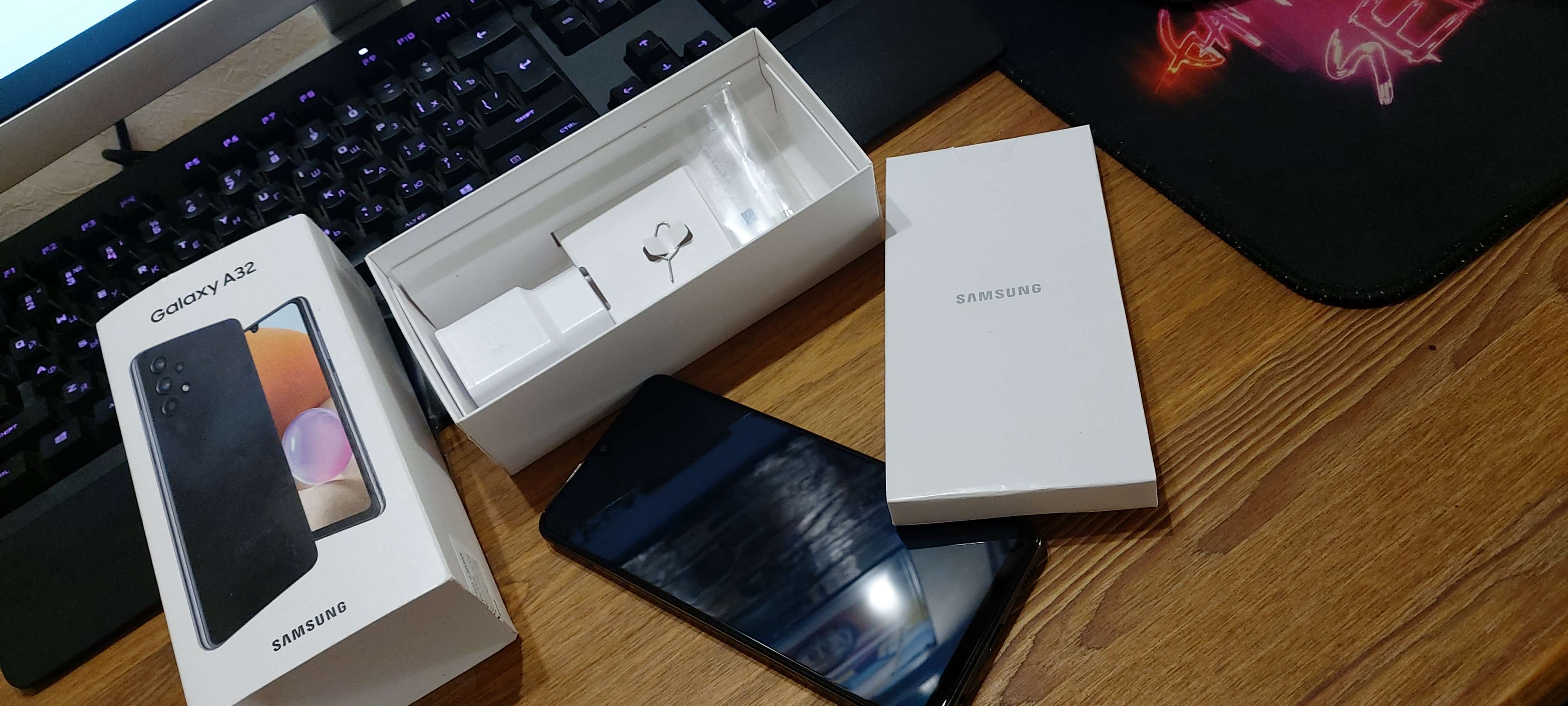 Samsung a32 64 гб в чёрном цвете. Комплект полный. По работоспособности нареканий нет, все отлично. Батарея менялась где-то месяц назад. Дисплей в идеале, задняя крышка имеет следы использования, но её не менял принципиально, так как оригинал лучше, даже если с царапинами)) Очень понравилась камера, фотографии делает действительно неплохие. Очень приятный дисплей, амолед все таки неплохая штука. Можно рассмотреть обмен) Для форума 11000