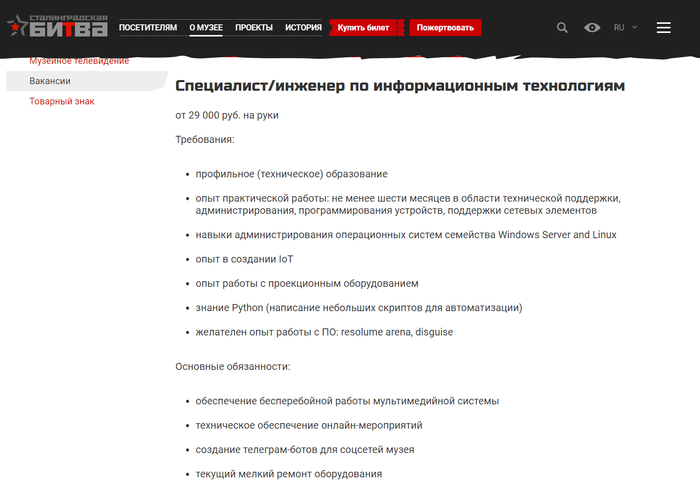 Зарплату бы чуть побольше, я бы пошёл. Моя нынешняя работа по обязанностям не сильно отличается. Резолюм, правда, в глаза не видел. Знаком с Sony Vegas и Adobe Premiere. Не гуру, конечно, но иногда балуюсь. И с питоном не знаком. Хотя это дело наживное. им ещё TCP/IP нравится. Уж не знаю чем. Спрашивают, вы знакомы с tcp/ip? Да, говорю. Такие лица сразу довольные становятся.))))