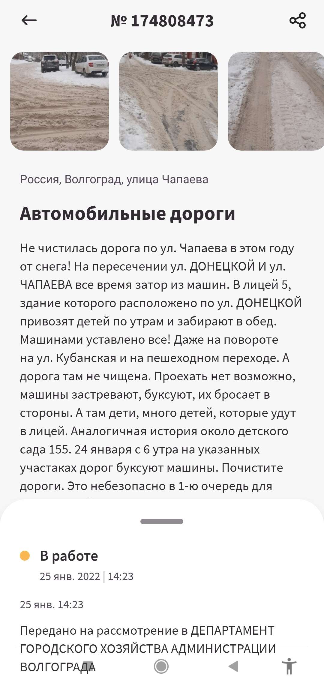 Дворы ещё ладно, надовить можно А тротуары? Мелкие дороги? За них отвечает город, но нет ни людей, ни техники... Куча заявок, ни одна не выполняется Приходит ответ "мы направили письмо об усилении уборки по вашему заявлению" Но ровным счётом ничего больше не будет, пока само не растает