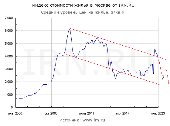 Думаю, что есть несколько причин. 1. Рынок недвижимости инертен. Коррекция начала проявляться полгода назад, минимум цен мы увидим через 2 - 3 года после их максимальных значений в постковидный период. 2. Объём денежной массы (М2) очень сильно вырос. Всё видно на графике. Эти деньги в обращении или на счетах в банках. Средства как финансовых организаций, так и физических лиц. Немалая часть которых идёт в бетон, личный опыт. Представьте, что вам надо сохранить ваш пенсионный капитал в текущих условиях. Биржа, банк или что-то ещё? Что? Таких сделок всё меньше, но они были два года без остановок и, как следствие, цены ушли сильно вверх. 3. Валюта. В 1998-м я видел, как рубль кратно слабел, и кто был в $, значительно увеличили свой фин. потенциал. Однушки в Москве тогда стоили 15 т. долларов, двушки около 20 тысяч и тд.. Власти учли этот опыт и очень грамотно /на мой взгляд/ избежали обвала в этот раз. Насколько долго это у них получится делать, - вопрос. Допускаю, что в прошедшие два года был значительный отток из валюты в кв.метры, когда были пиковые значения курсов. Предположу, что на сл. скачке курса также многие захотят выйти из долларов и евро и зафиксировать прибыль. В дальнейшем предполагаю коррекцию на РН и в рублях, и в валюте. Как на графике. Отличие в том, что в рублях это будет именно коррекция, а в валюте это глобальный тренд вниз.