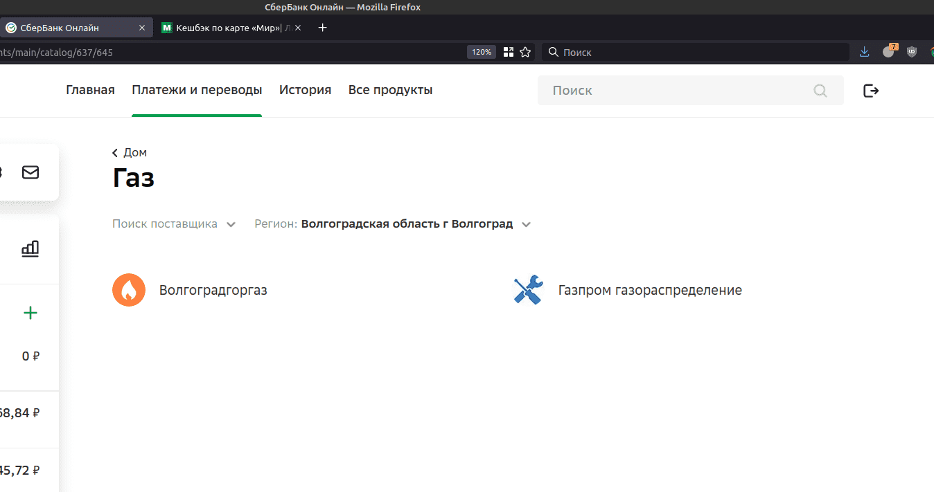 Сейчас зашел на сайт Сбера - вообще нет такой компании "Газпром межрегионгаз Волгоград". Оплатить за газ через Сбер - невозможно. ЗЫ: через ГИС ЖКХ комиссия - 9%. Охренели что ли все? ЗЗЫ: через yoomoney - 2%. Какие еще варианты? Получить еще одну банковскую карту - не предлагать!