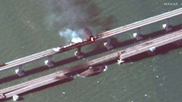 Смотрю видео взрыва, как с внешней стороны моста в сторону состава летит поток горящего вещества и впечатление складывается, что это ракетная атака с боеприпасом большой мощности, которых нет на Украине. Да и сторона, с которой мост атакован противоположна возможных пусков с Украины. История та же, что и с Потоками. Только в распоряжении НАТО есть такие боеприпасы.