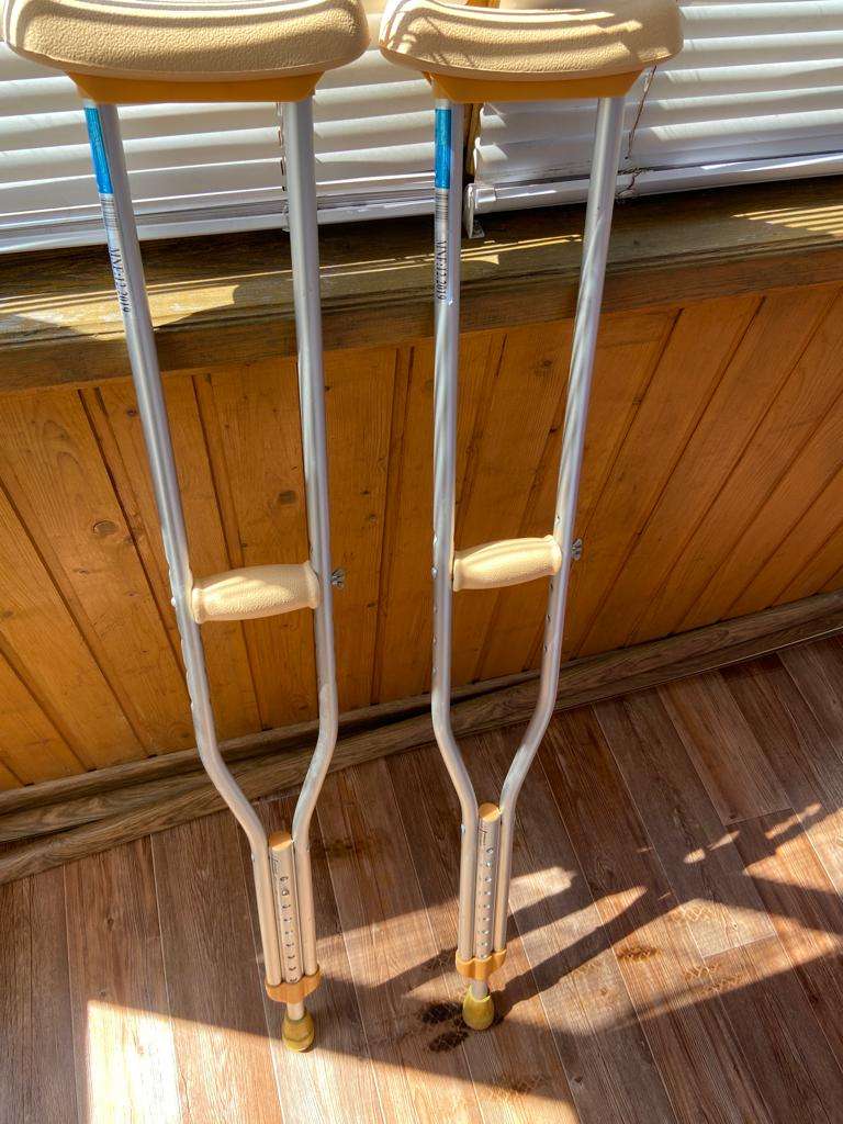 Костыли подмышечные, покупались год назад, использовались 1 месяц, в основном для передвижения по квартире. Цена - 1200.