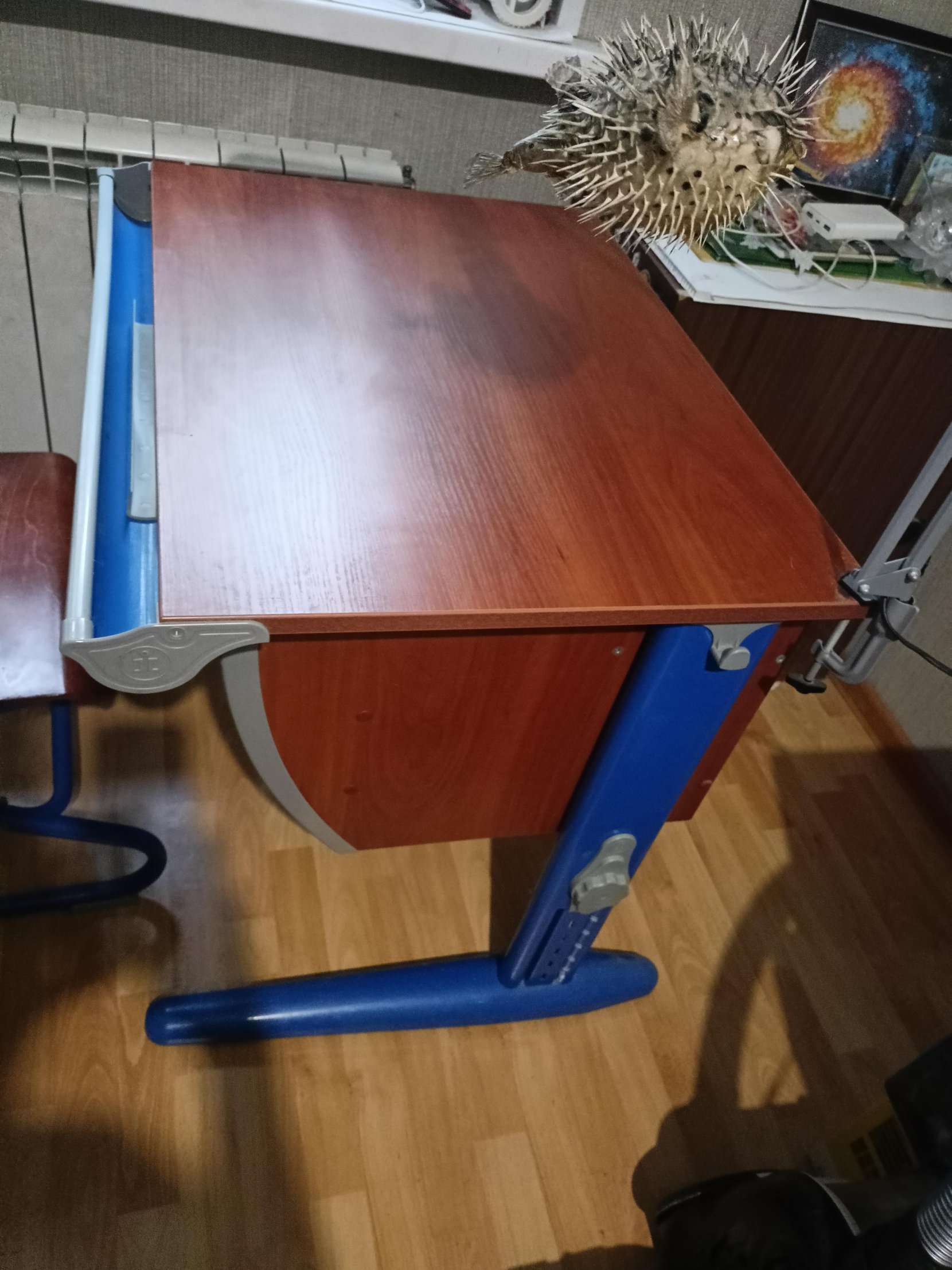 Продается школьный набор Дэми: растущая парта СУТ.14, растущий стул и полка (полку можно повесить на парту или отдельно на стену). Цветовая гамма: орех с металлическими ножками синего цвета и отделкой пластиком серого. Размеры: Размеры стола: размер столешницы - 75 см x 50 см высота подъема стола - 53 см - 81,5 см (для роста ребенка от 120 см до 198 см) угол наклона - от 0° до 26° (9-ти ступенчатая регулировка) Размеры стула: высота сидения стула - 34,5 - 44,5 см глубина сидения стула - 33 - 34,3 см ширина сидения стула - 40 см Цена 6к за комплект продаю 2 комлекта