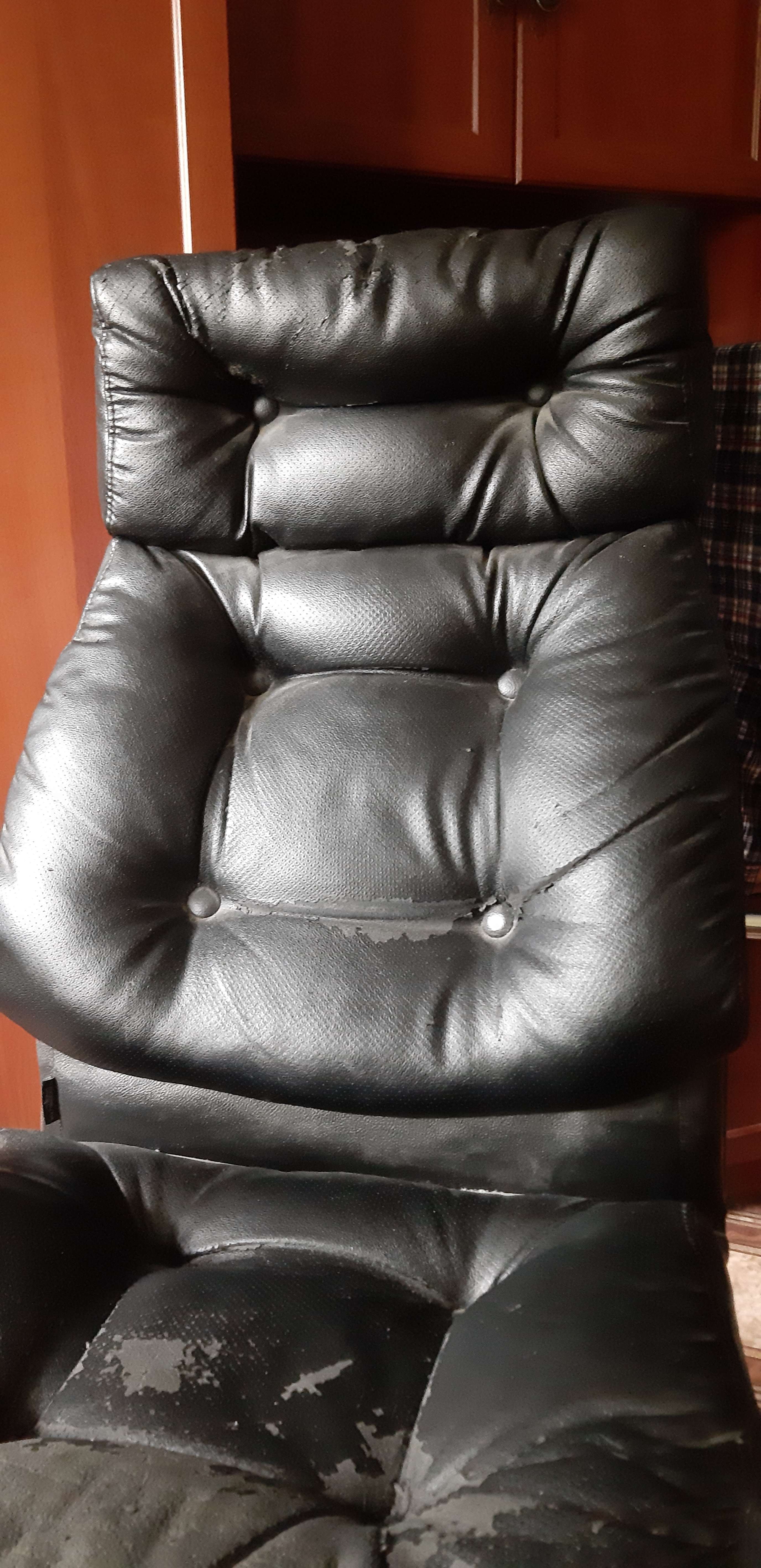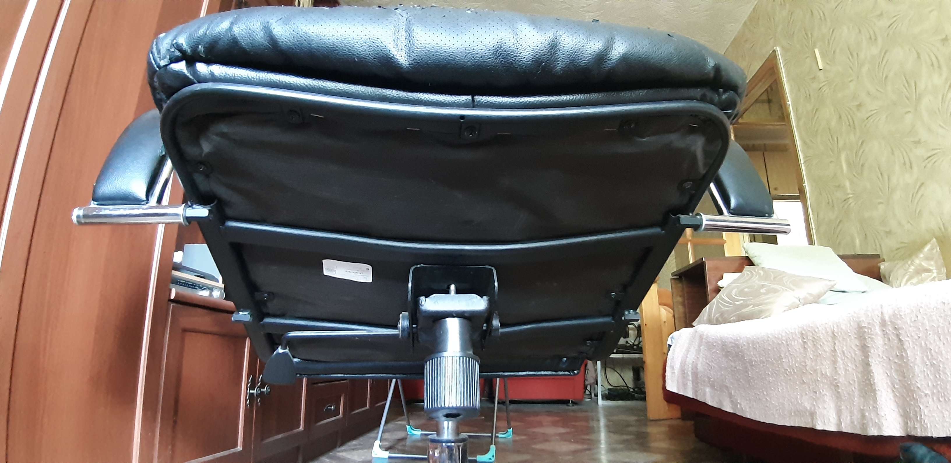 Продам гиганское кресло Metta LK-14 CH (каркас металл, цвет черный), премиум сегмента, покупал в 2018г, реально пользовался 2 года, потом оно стояло и в этом году облезла кожа на сидушке и спинке. Продаю под перетяжку или можно плед подстелить и пользоваться. Заказывал опционально к нему полиуретановые колеса, чтобы линолеум не продавливало. Есть функция кресло-качалки, на нём можно хоть спать, оно комфортное для любого веса. Вес кресла 20кг, каркас у него полностью из металла. Только вот один минус - перфорированная "экокожа" начала отслаиваться от подложки кусками. Цена нового сейчас от 20.000 до 37.000р. В свое время покупал его за 16000р. Магазин изначально надурил меня с экокожей, выдав ее за нат.кожу (по интернету была переписка и общение по телефону). Когда кресло пришло с другого города решил оставить как есть и пользоваться, так как оно очень мне понравилось по дизайну и посадке. По цене хочу 4000р, для форумчан, на авито выставил за 5000р.