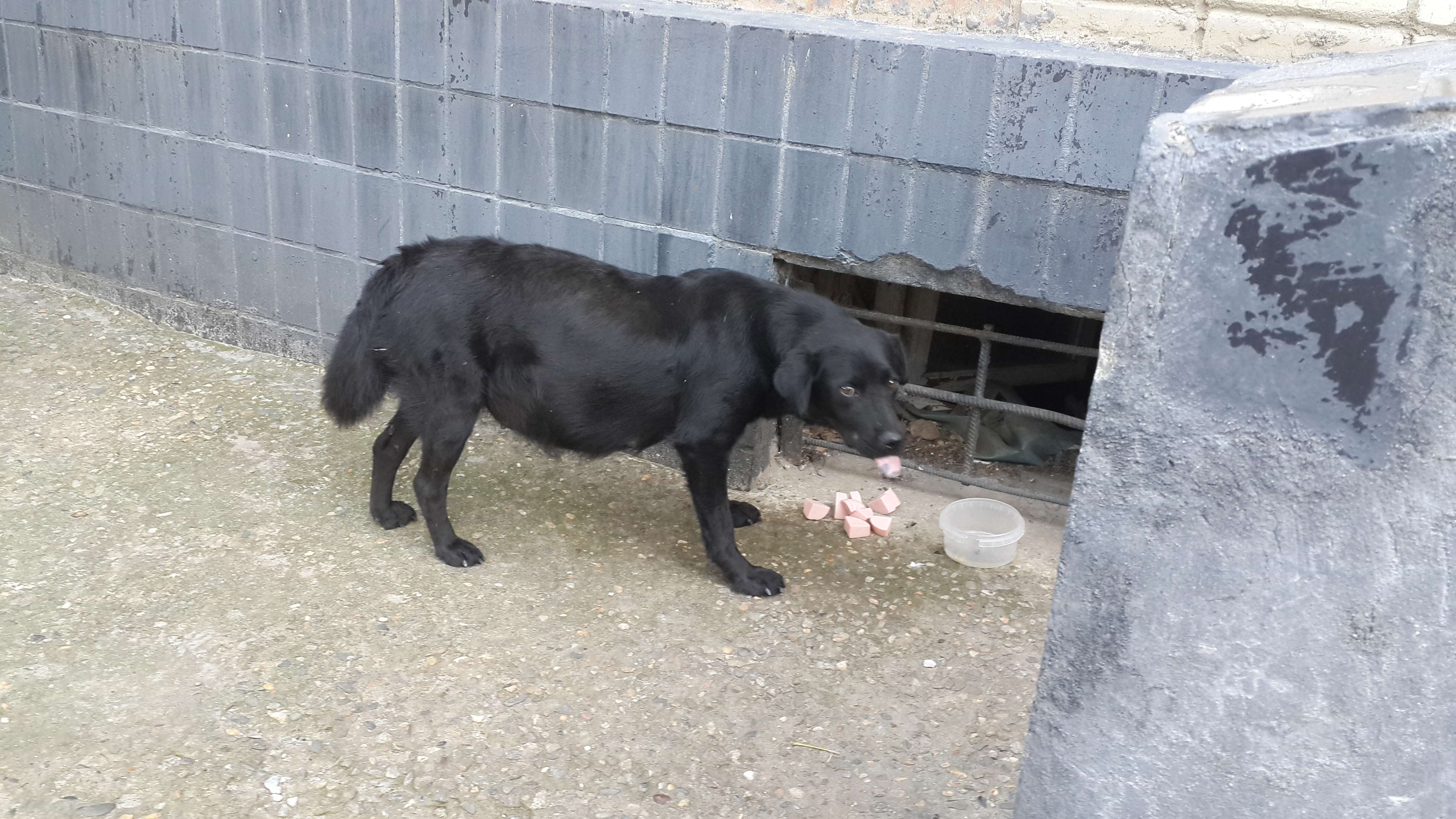 Во дворе появилась собака. Бирки нет - т.е из домашних. Скромная, людей опасается, но из рук еду после недолгих раздумий берет. Похоже заботливые хозяева выбросили. А может потерялась. На морде справа маленькое белое пятно.