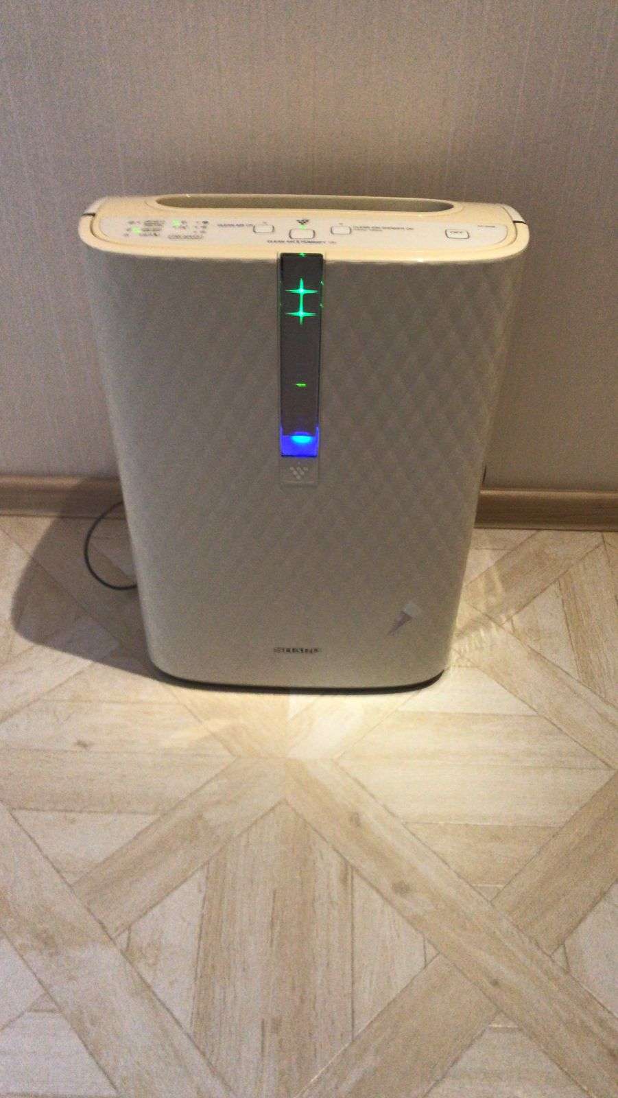 Он же увлажнитель, он же ионизатор Спойлер Климатический комплекс Sharp KC-840E. Назначение очистка и ионизация воздуха, увлажнение воздуха. Обслуживаемая площадь до 26 м². Максимальный воздухообмен 210 м³/ч. Уникальная технология Plasmacluster при помощи положительных и отрицательных ионов деактивируют переносимые по воздуху микроорганизмы (вирусы, бактерии, споры грибков плесени), пыльцу, аллергены и другие вредные примеси (например, окись азота, содержащуюся в сигаретном дыме, аммиачный запах домашних животных и неприятные запахи с кухни и из санузла) и очищает воздух. Режимы работы: Очистка воздуха Увлажнение и очистка воздуха Увлажнение + ионизация Особенности: Цветовой индикатор пыли Индикатор запаха Цветовая индикация влажности воздуха Cенсор пыли, температуры, влажности воздуха Бесшумная работа в ночном режиме Инверторное управление Работает действительно бесшумно. Высота - 550 мм Ширина 360 мм Цвет белый (крем) По цене пока не определился, предлагайте. Использовался мало, больше стоял без дела. Всё, что надо/можно проверить - проверим на месте. Куплен лет 5 назад. Эксплуатация была не больше года