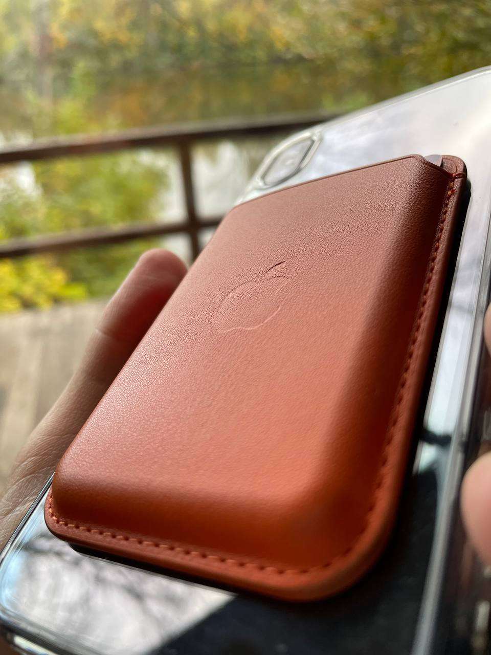 Если у вас айфон, который поддерживает беспроводную зарядку, то с простым чехлом она работать не будет. Для того, чтобы шёл заряд, нужен именно чехол с поддержкой magsafe — в него вшито кольцо и доп.секция. На фотографиях они под белым кругом и чёрточкой. Как верно отмечает Midea, на этот же чехол крепятся картхолдеры. Даже если у вас нет магнита в телефоне, с чехлом всё держится отлично. Выглядит так: