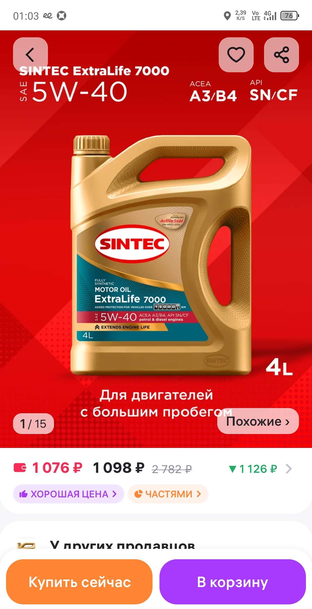 Я вот в этот раз залил синтетику лукойл люкс. Один фиг меняю максимум на 7 тыщах. Ушел с kixx, который типа с pao, который горел как не в себя