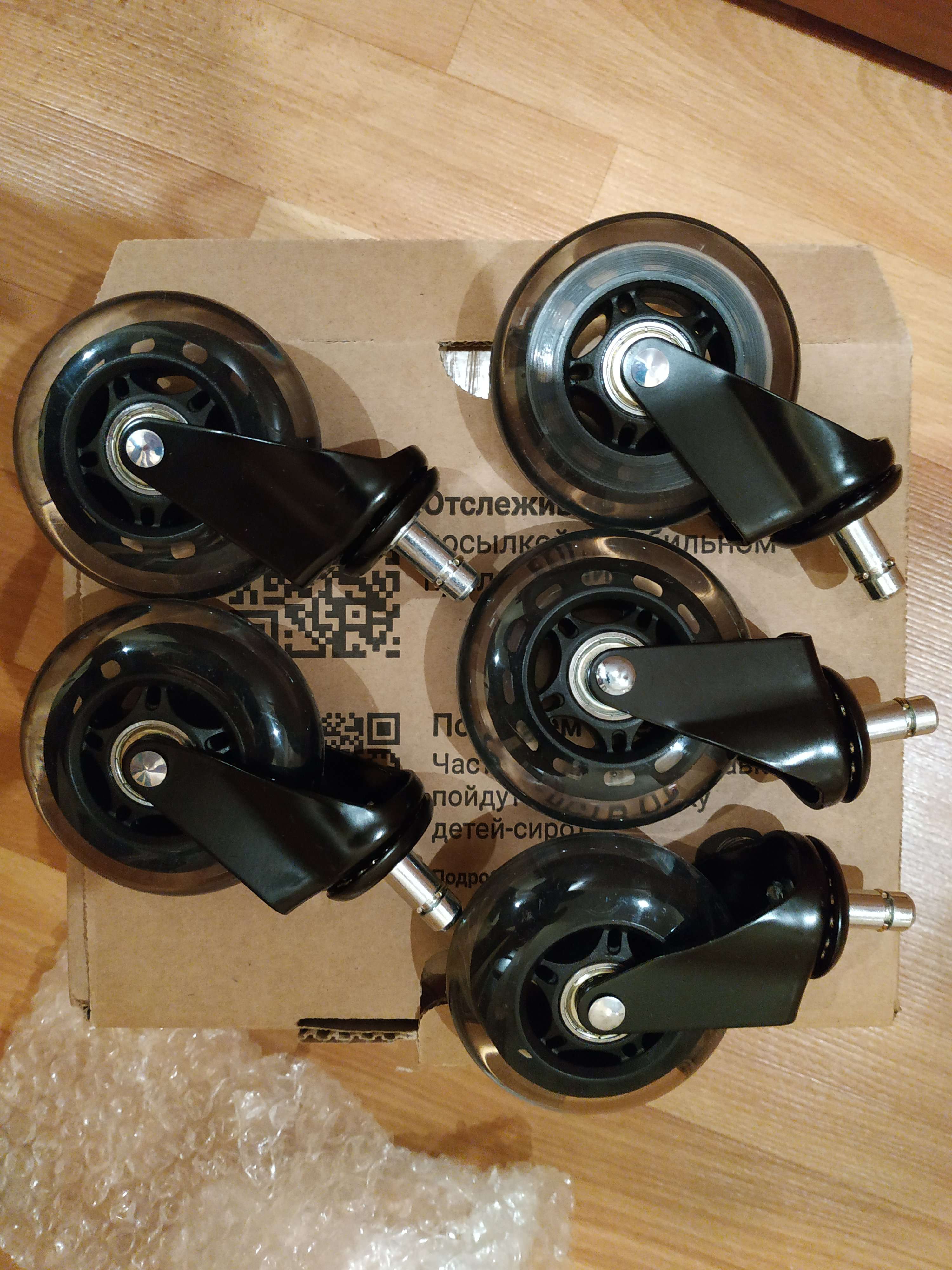 Новые, не использовались Силиконовые колеса (ролики) для кресла, стула/стола/тумбы -диаметр колеса 73 мм -диаметр штока 10 мм (подходят для кресел IKEA (икеа), можно и для других кресел с штоком 11 мм просто намотав несколько слоев изоленты будет держаться даже плотнее) Цена за комплект 5 шт.- 1200 руб. Торга нет Спойлер: колесики Усиленные мебельные колесики для компьютерного кресла обеспечивают распределенную нагрузку до 270 кг. Плавный и бесшумный поворотный механизм обеспечивает вращение роликов на 360 градусов. Абсолютно безопасны для любого напольного покрытия: паркет, ламинат, кафель, ковролин. Силиконовые колеса для кресла не оставляют следов на поверхности. Колеса мебельные поворотные подходят для офисного кресла на колесах, стула на колесиках, столика журнального на колесиках, прикроватного столика на колесиках, тумбы на колесах.