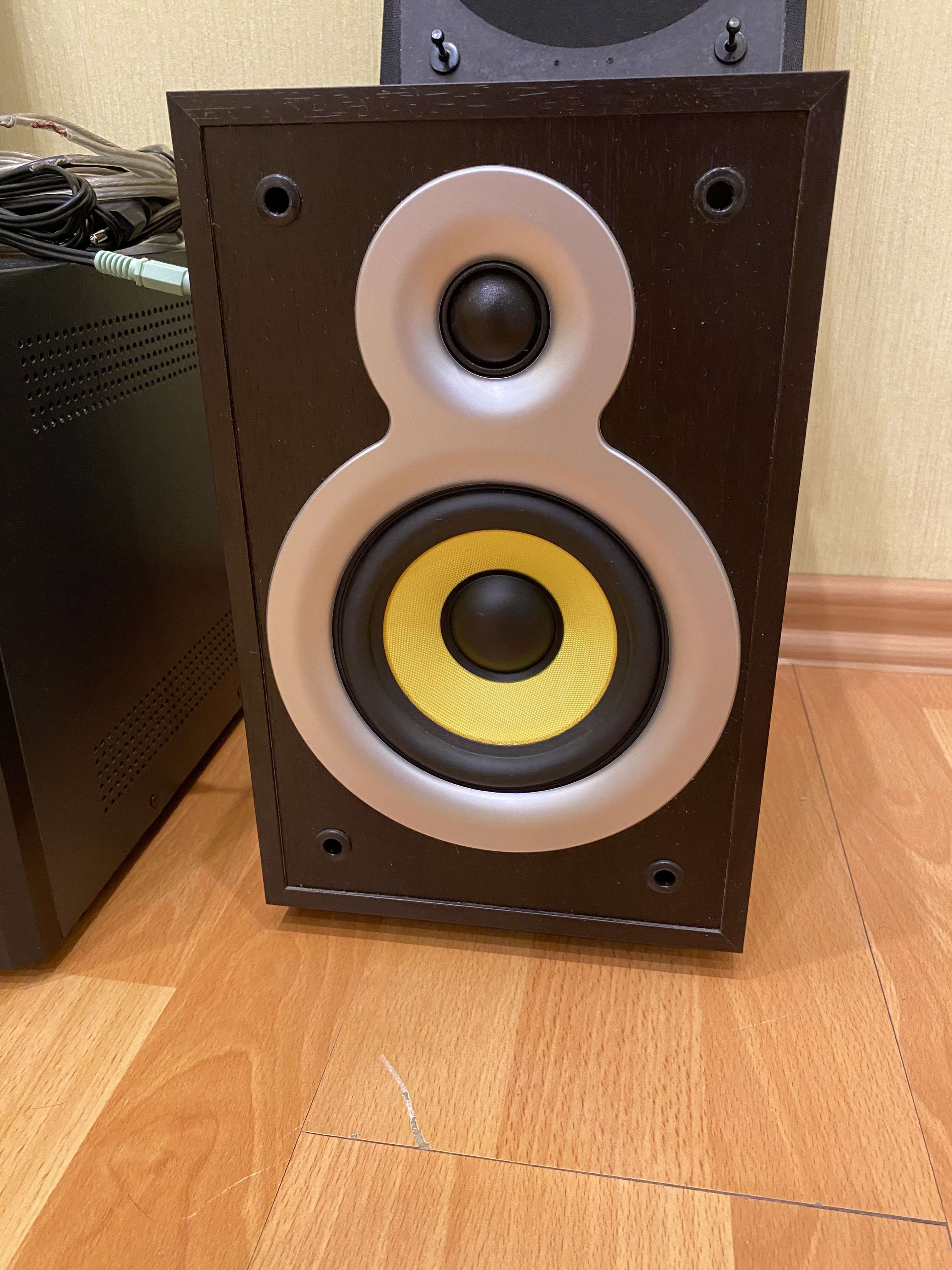 Выходная мощность 60 Вт Распределение мощности 2x30 Вт Частотная характеристика 45-20 000 Гц Мембрана ВЧ динамика 1 дюйм Мембрана НЧ динамика 5,25 дюйм Цвет: темное дерево Пульт ДУ Два входа 2RCA Габариты (сателлиты) 185 x 215 x 290 мм Габариты (усилитель) 90 x 315 x 252 мм Масса нетто изделия 11,95 кг Идеальное состояние. Целые углы, отсутствие сколов. Все кнопки на месте. Работает штатно. В комплекте колонки, усилитель, пульт. Аудио кабель jack 3.5 - 2RCA и Акустический медный кабель сечением 1,2 мм. Хочу 6000. 8-905-399-53-52 Антон