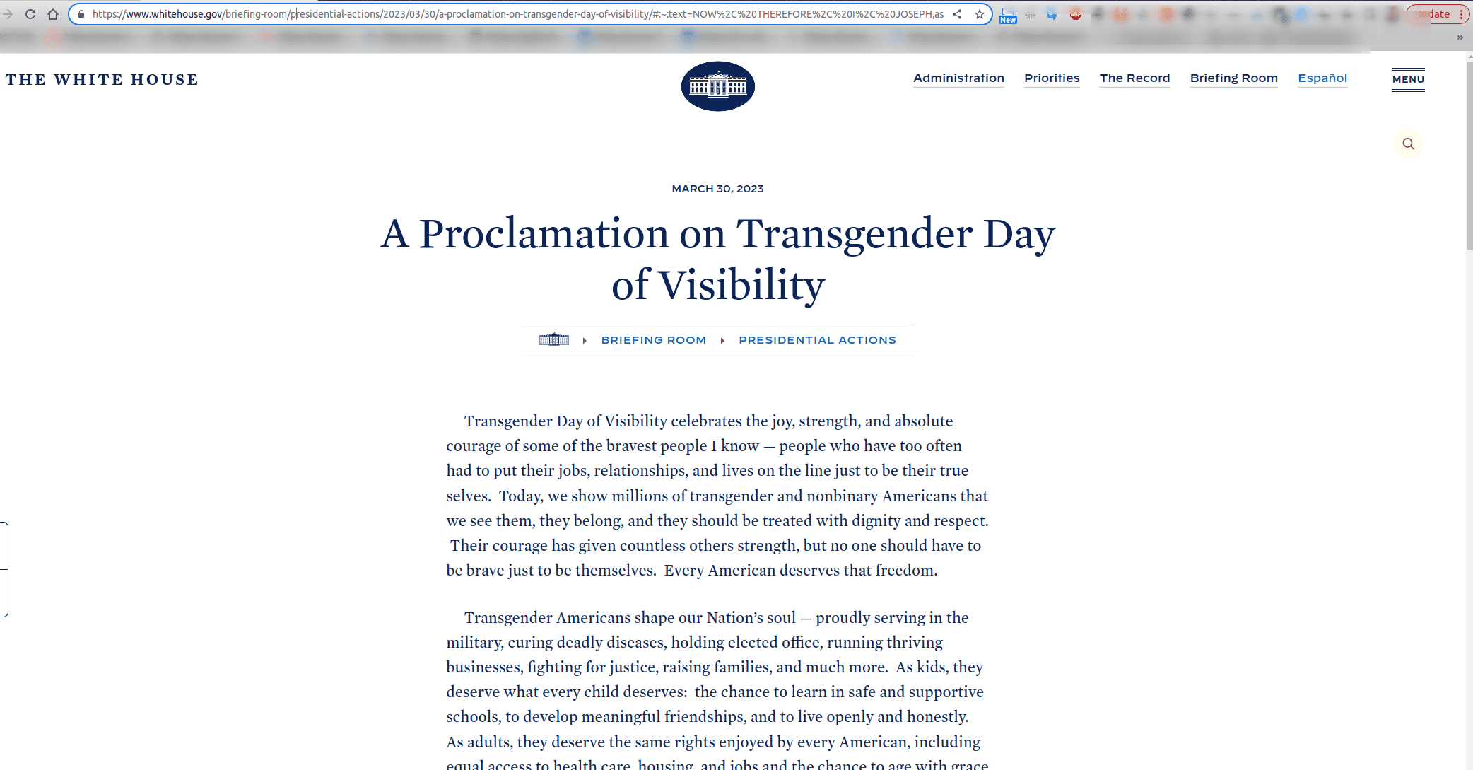 тому, кто хочет видеть - да; но вот еще немножечко росы https://www.whitehouse.gov/briefing...E, I, JOSEPH,as Transgender Day of Visibility.