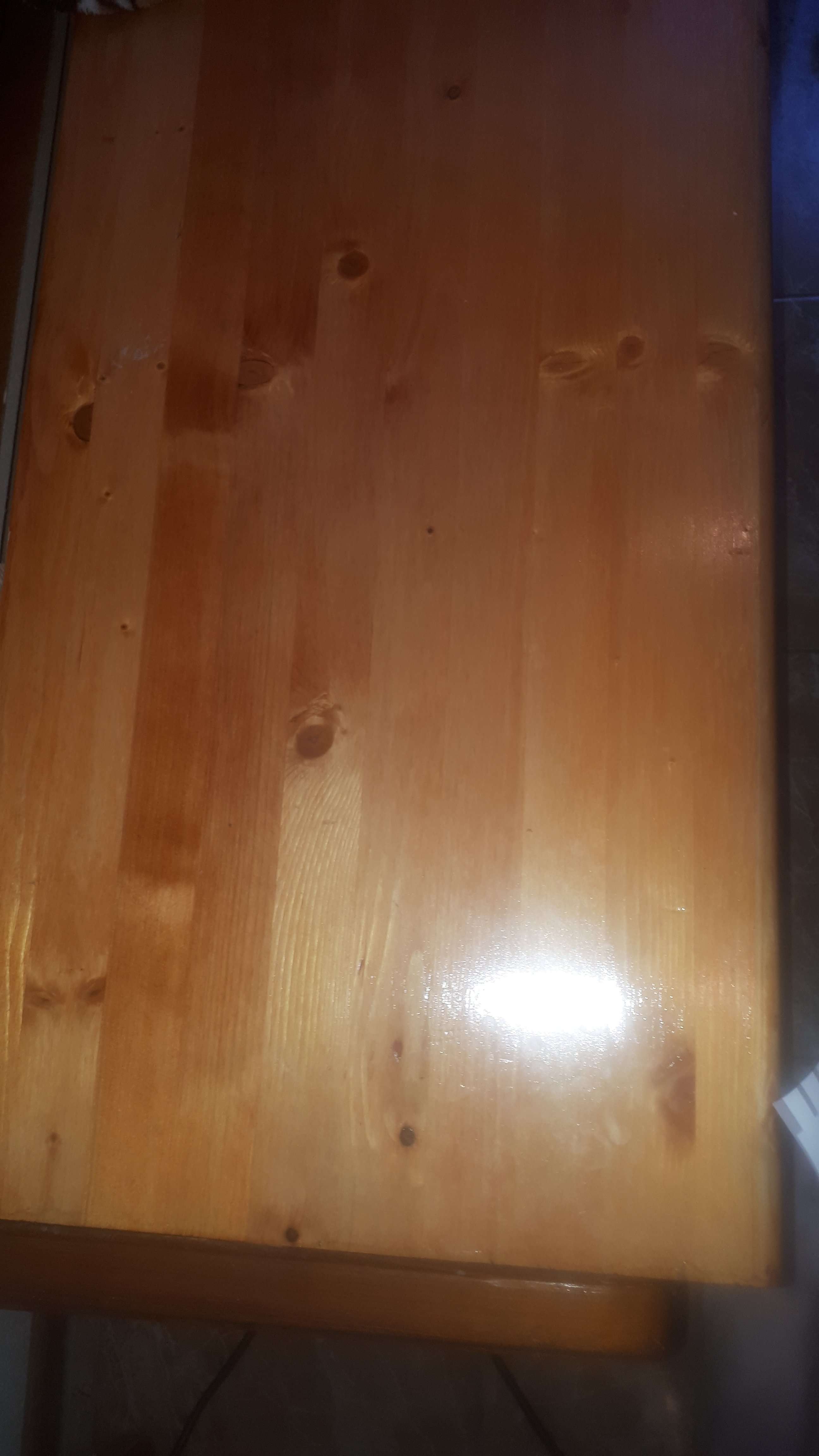 Не знаю даже что и сказать но цвет помоему самое ТО ОНО, вот крашенное в жизнерадостные цвета, и даже оно показывает все недостатки склеенного массива из говна. И написано на этом было что категория А, 40 мм толщина, пропитка в три раза, лак в три слоя с шлифовкой двух. А вот такое недоразумение.