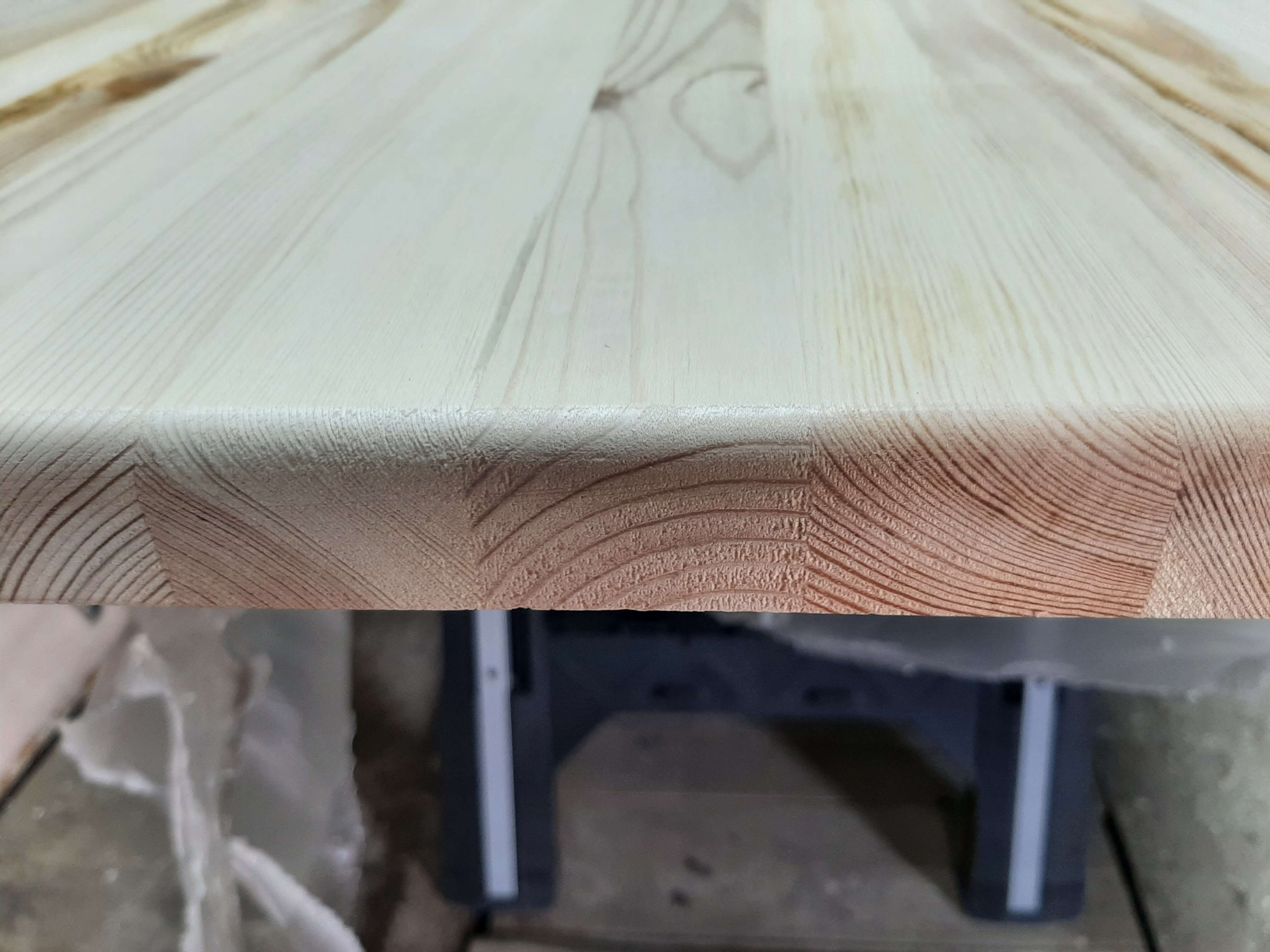 для клееных деревянных щитов, еще очень важно основание. Чтоб повело по минимуму снизу лучше сварить конструкцию из уголка/профиля металлического, который будет удерживать от изменений дерево. А не просто вертикальные ножки прикрутить.