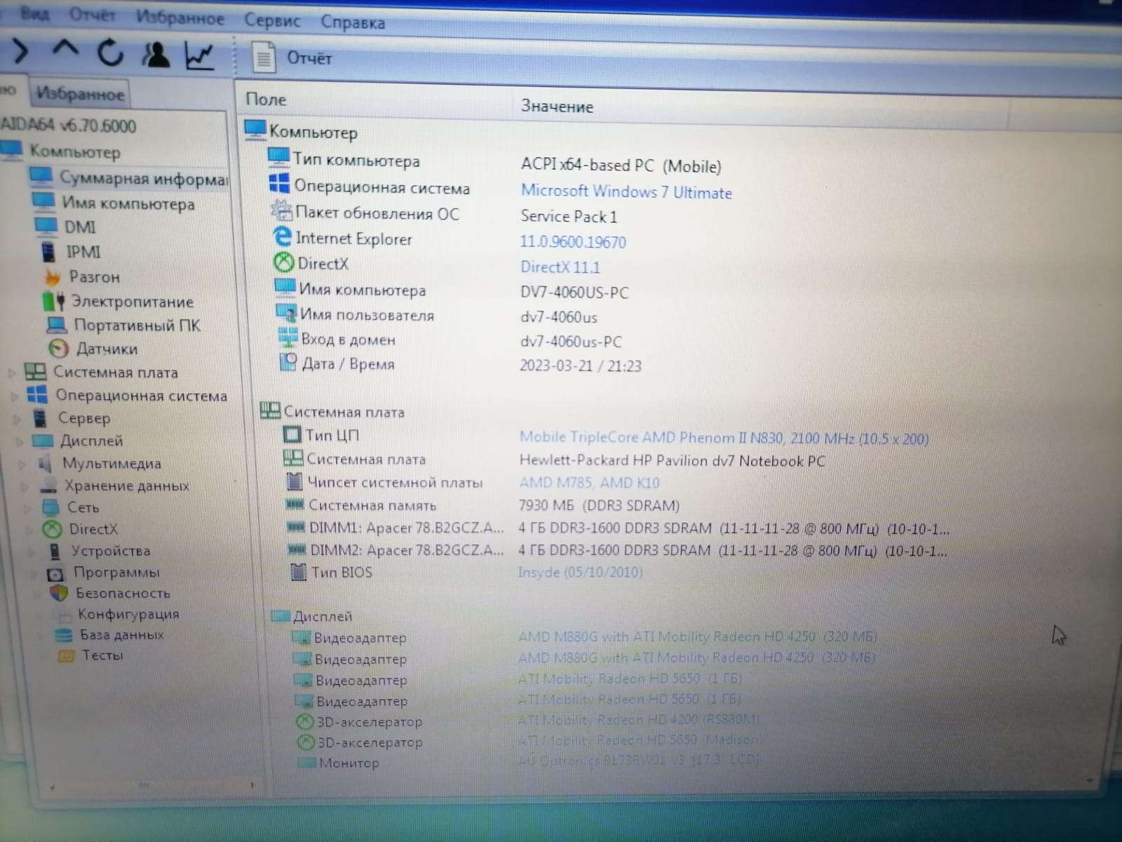 1. HP dv7-4060us Отличный ноутбук практически в идеальном состоянии. Большая диагональ, на борту шустрый 3х ядерный 2,1 ггц проц Phenom n830, абсолютно нулевый ssd 128, 8гб ОЗУ DDR 3L, Radeon HD 5650 с 1 гб видеопамяти. Цена - 10 000, торг. + 1000 подкину двухдиапазонный вайфай + 1500 - нульцевую ноутбучную сумку 2. HP dv6-3090er Продам бывало старичка, но старый конь борозды не испортит. На борту двухядерный резвый проц Athlon P320, 2 ядра по 2,2 ггц (+2500р и поставлю четырехядерный Phenom P960 1,8 ггц, но смысла в этом особого не вижу), 8 гб ОЗУ DDR 3L, видак радеон 5650 1 гб, для системы 128гб ssd(без пробега) + 500гб hdd на салазках вместо cdrom (-1500р. и верну сидюк на место). Есть косметический дефект, под левой петлей сломан поддон(хроническая болезнь этой серии ноутов), на работу не влияет, петля зафиксирована да и вентиляция лучше. Могу подкинуть в этом же месте склеенный, но целостный подддон(+1500), но опять же - смысла в этом особого не вижу. Цена 8000 торг. + 1000 рублей и поставлю двухдипазонный wifi модуль + bt + 1500 рублей и в придачу дам нулевую сумку 3. Vaio pcg Продаю отличную шуструю рабочую лошадку. На борту АМД Phenom 2 n930 4 ядра по 2 ггц, 8 гб ОЗУ DDR3L, видео 1гб, двухдиапазонный вайфай, куча наклеек на крышке, вместо dvd - hdd на 500, для системы ssd на 240. Без винтов дешевле. Прошу 9000. В целом неплохой вариант за эти деньги. Торг само собой будет. 3,5. Ноутбук hp dv6-3060er на запчасти. Предпочтительно в сборе. Цена за комплект - 4500 без ссд и прочих ликвидных мелочей. Матрица живая, матрица отдельно - 2500, верхняя крышка в подарок. Материнка - вероятнее всего дохлый север, питание в начале есть, экран(в том числе и внешний - тишина, кулер не стартует). Видак, юг и проц вероятнее всего живые, следов демонтажа я не увидел. Но без гарантии. Клавиатура - все кнопки на месте. Мелочевку отдавать отдельно не буду. Отдельно есть два ssd msata на 64 и 128гб по 800 и 1200 рублеу сответственно. Россыпь оперативки - от 1 гб. Есть двухдиапазонный вайвай модуль с бт, с антеннами и возможностью монтажа на материнки десктопов - 1500р. Есть сата хдд обьемом от 128 до 500 гб.