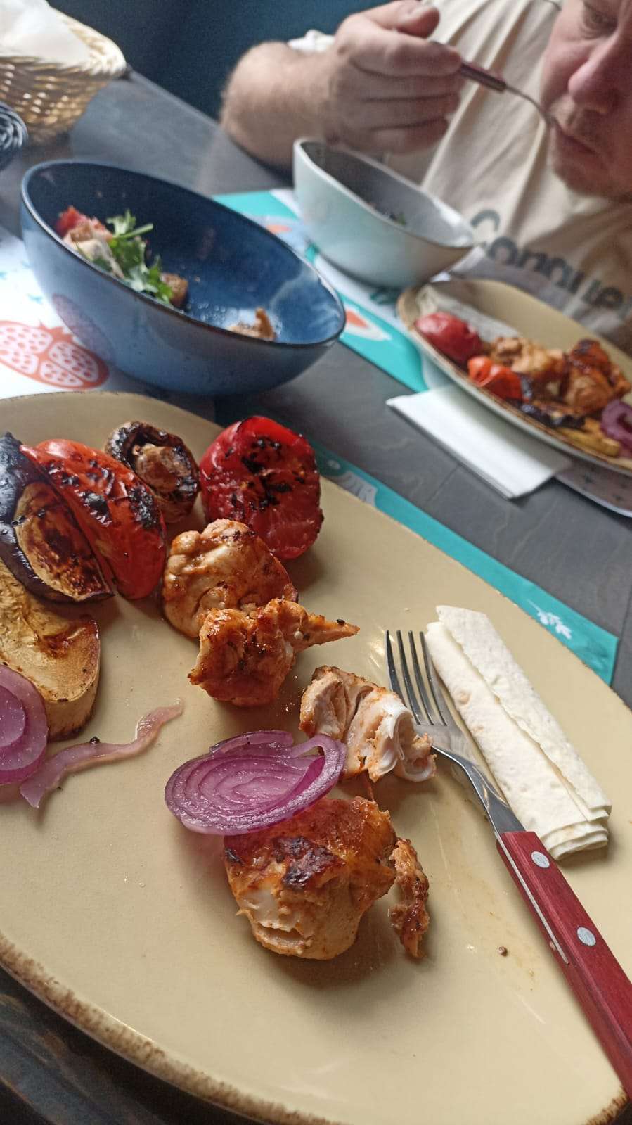 Очень понравилось в Кинзе - обедать! Борщ - Огонь, с Салом и луком подают. Салаты 2-3 вида мне понравились Шашлык из курицы и жареные овощи на 2е отлично! Ну и Морсик Брать меньший набор не выгодно 490 - 1,2,3 и "компот" 460 Без салата