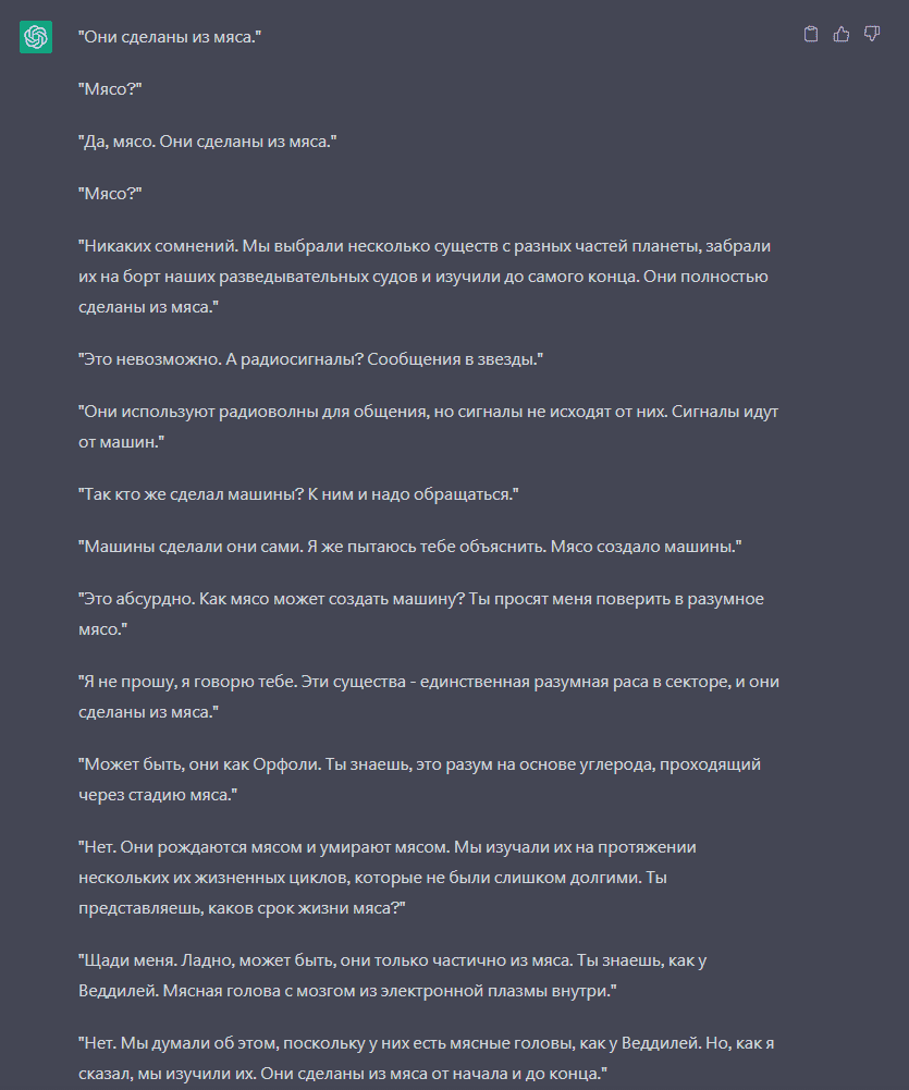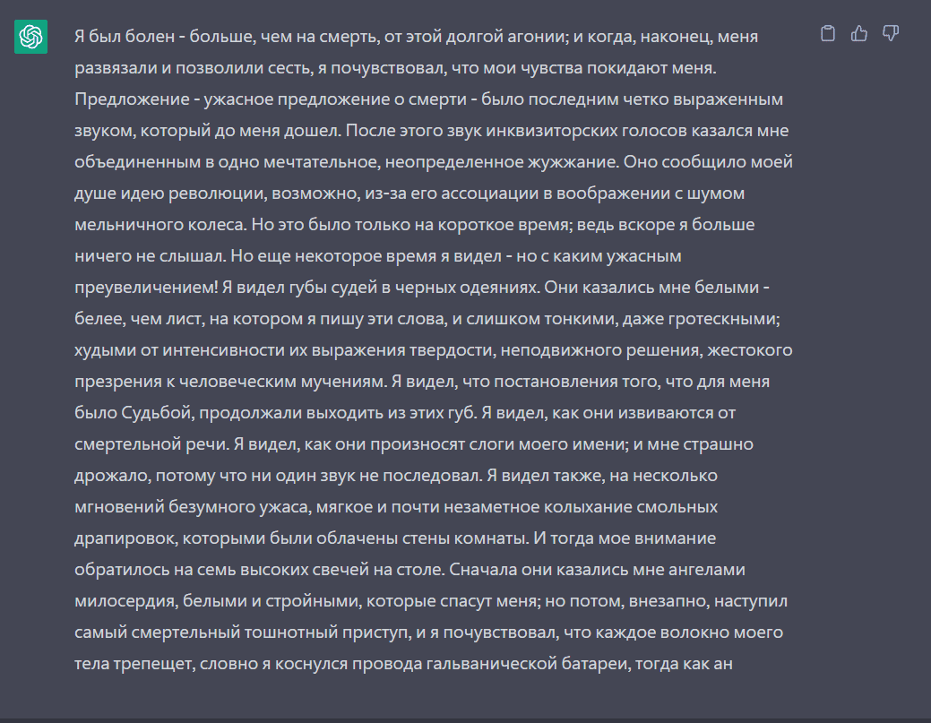 Чатгпт переводит, исправляет ошибки, объясняет грамматику, делает краткие пересказы текстов, указывает на стилистические промахи, даёт советы по неймингу, предлагает лучшие варианты взамен не очень удачных Я сейчас понемногу у него консультируюсь по изучаемым языкам - дуолинго даёт номинальную практику но без теории, а теорию как раз можно подобрать через чатгпт Попробовал по фану разных переводов текстов. В целом, конечно, далеко от идеала "They are made out of meat" "The pit and the pendulum"