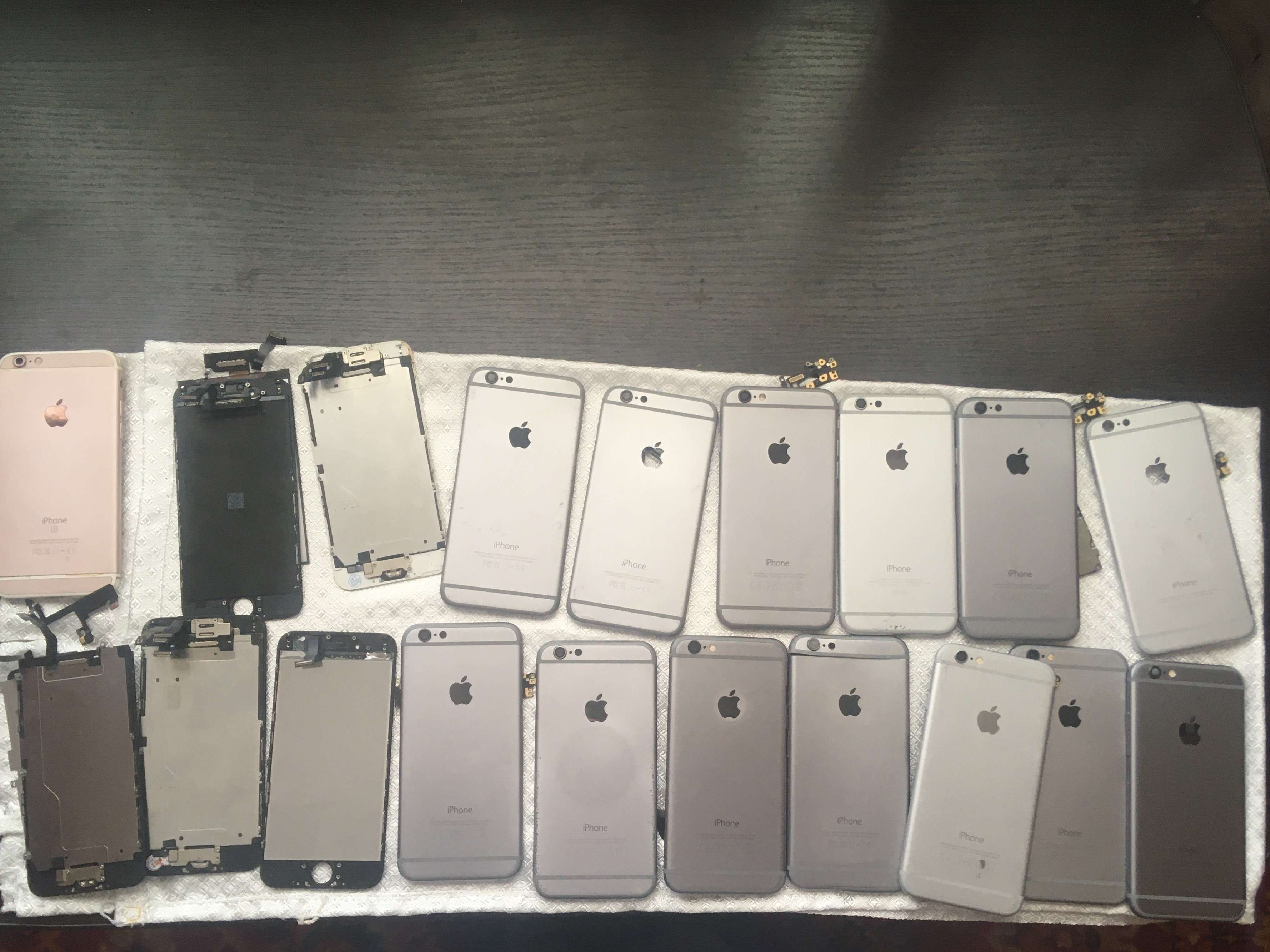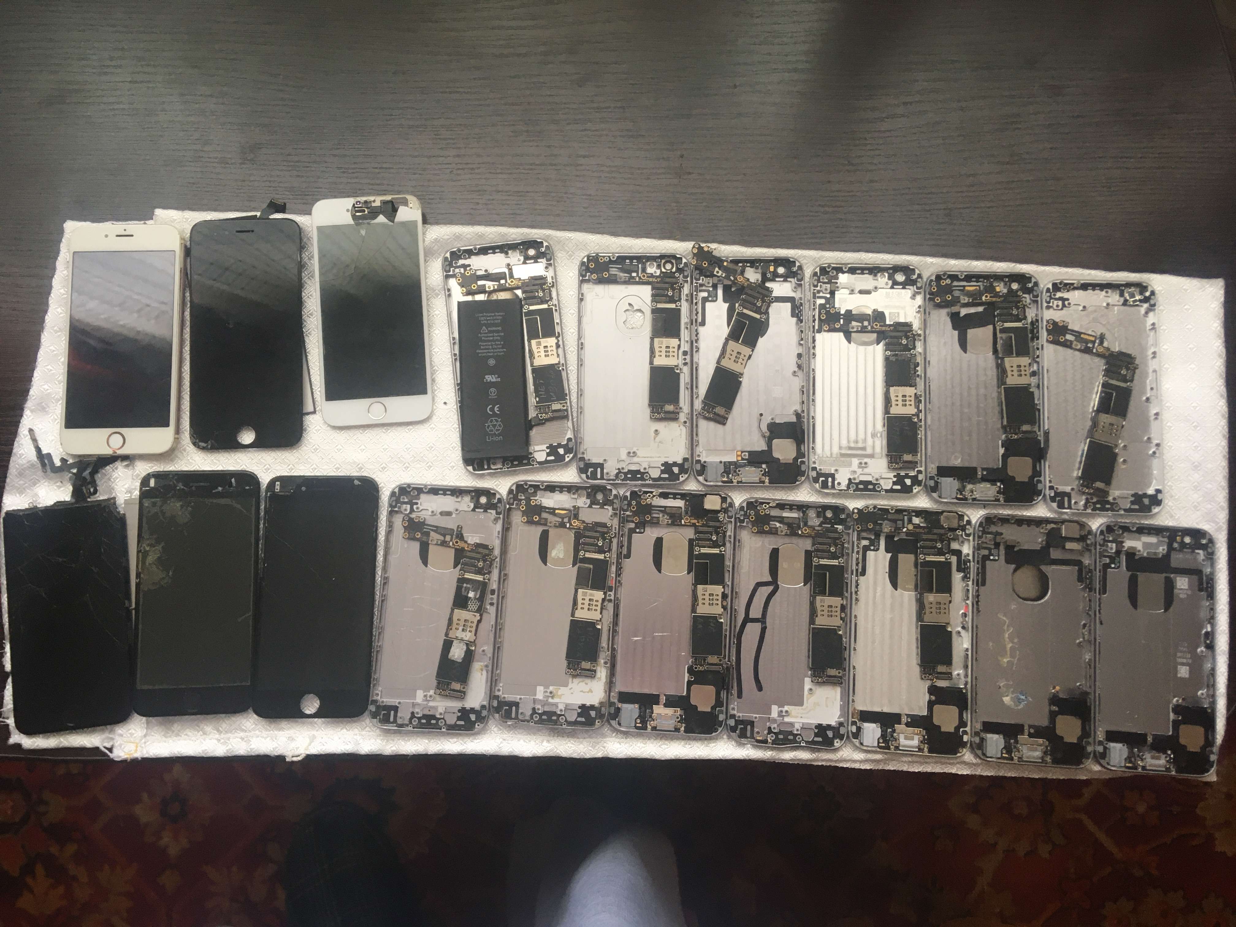 Продам 11 шт. мобильных телефонов Iphone 6 и всё что на фотографиях. Дисплеи , корпуса, материнские платы и Андроид телефон 6S(Розовый). Достались такими. Некоторые не включаются , некоторые заблокированные. Продам всё лотом, в одни руки , пакетом , всё сразу. На запчасти! Цена : 1000 руб. Дешевле не отдам.