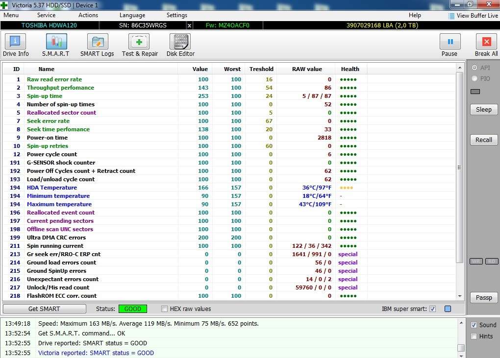 Продам жесткий диск 3.5" 2Tb Seagate ST2000VX008 Состояние на скринах. 2000 руб.