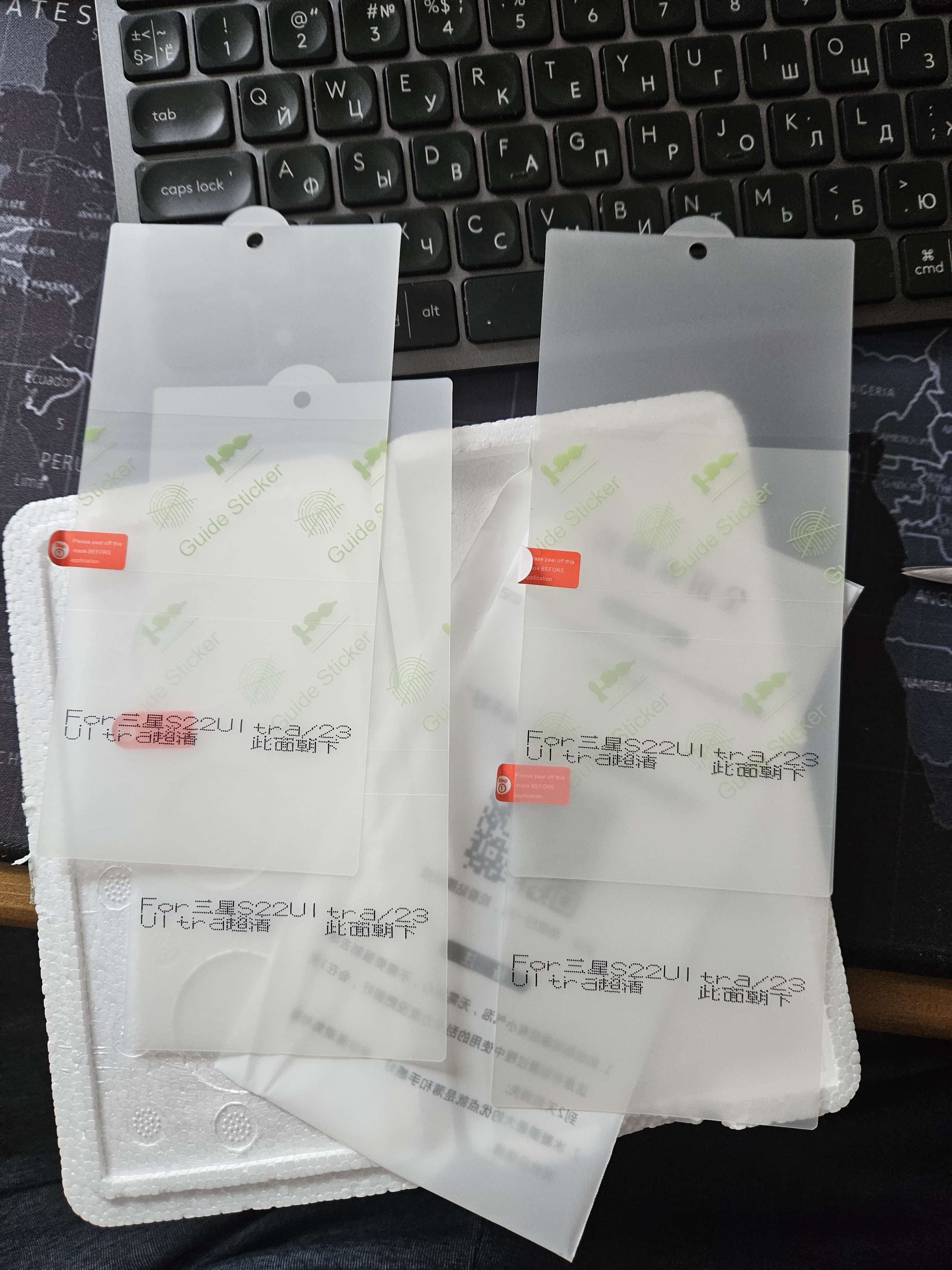 Только получил с Али. Заказывал для обычного s23, прислали для ультры. 4 пленки в комплекте, салфетки и картонка для разглаживания. Отдаю по себестоимости - 250 руб. Забирать в жилгородке.