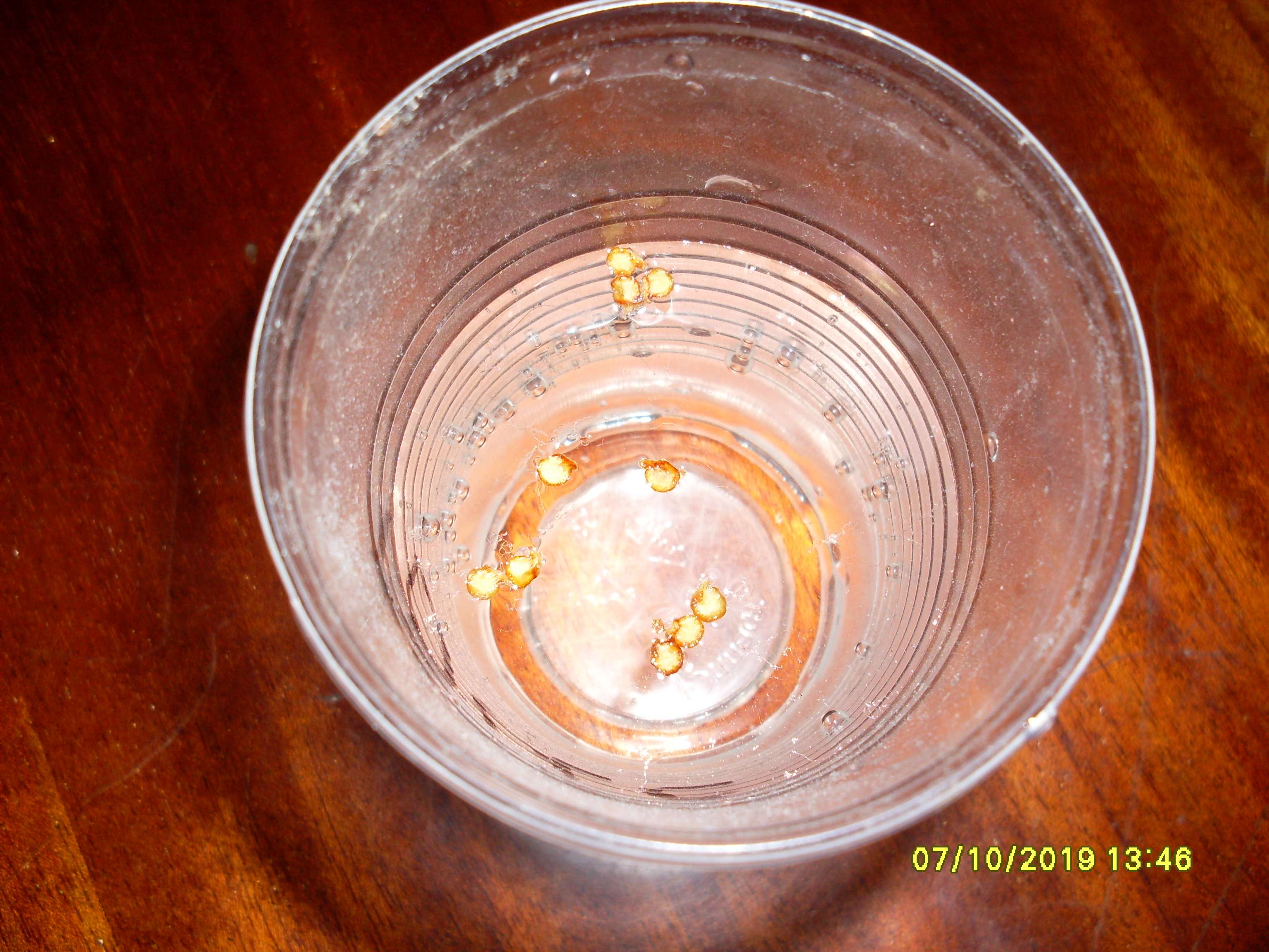 Семена проращиваю традиционно - в ватных дисках. И предварительно замачиваю в стаканчике с водой, на сутки. Потом отфильтровываю в марлю и кладу уже в ватные диски. Смотрите фотки.Одну растиху посажу в землю, остальные на гидропонику. Почему одну в землю? Да потомучто вся гидропоника будет жива только до жары. И жару не переживёт. А у меня меркантильный интерес, всё-таки я растихи покупал. Поэтому нужен выхлоп гарантированный. А земля такую возможность даёт. Она почемуто жары не боится.