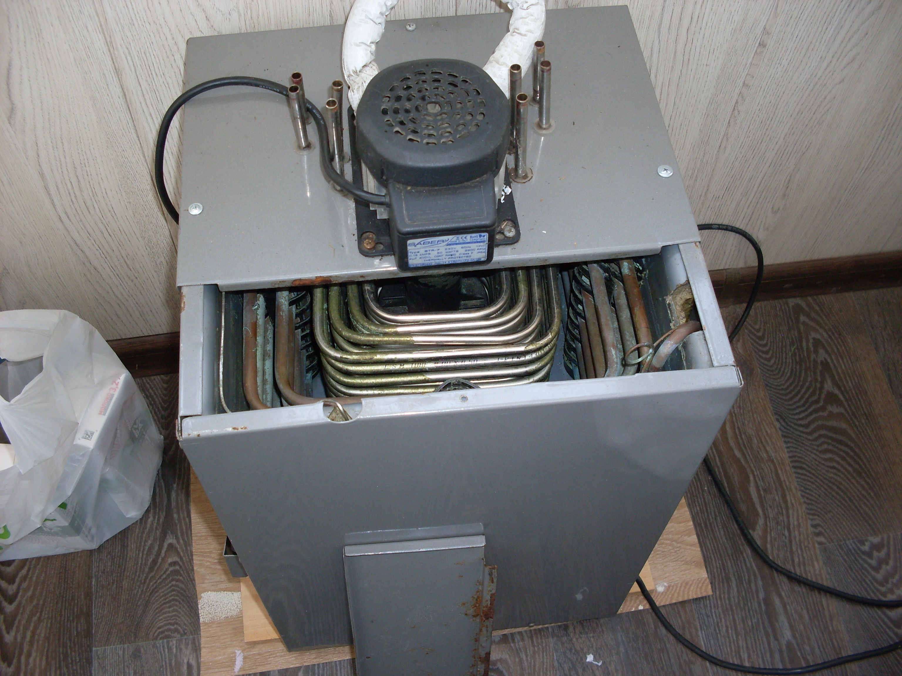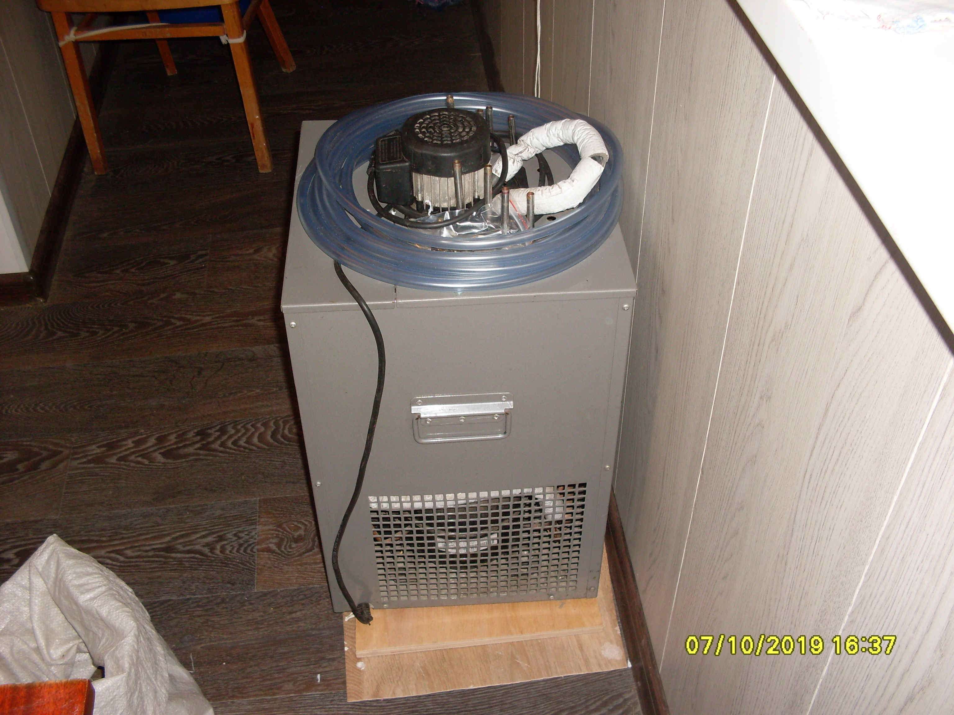 Охладитель я настроил так, чтоб он работал один раз в сутки. Он за час намораживает толстую корку льда и его хватает на сутки с запасом.