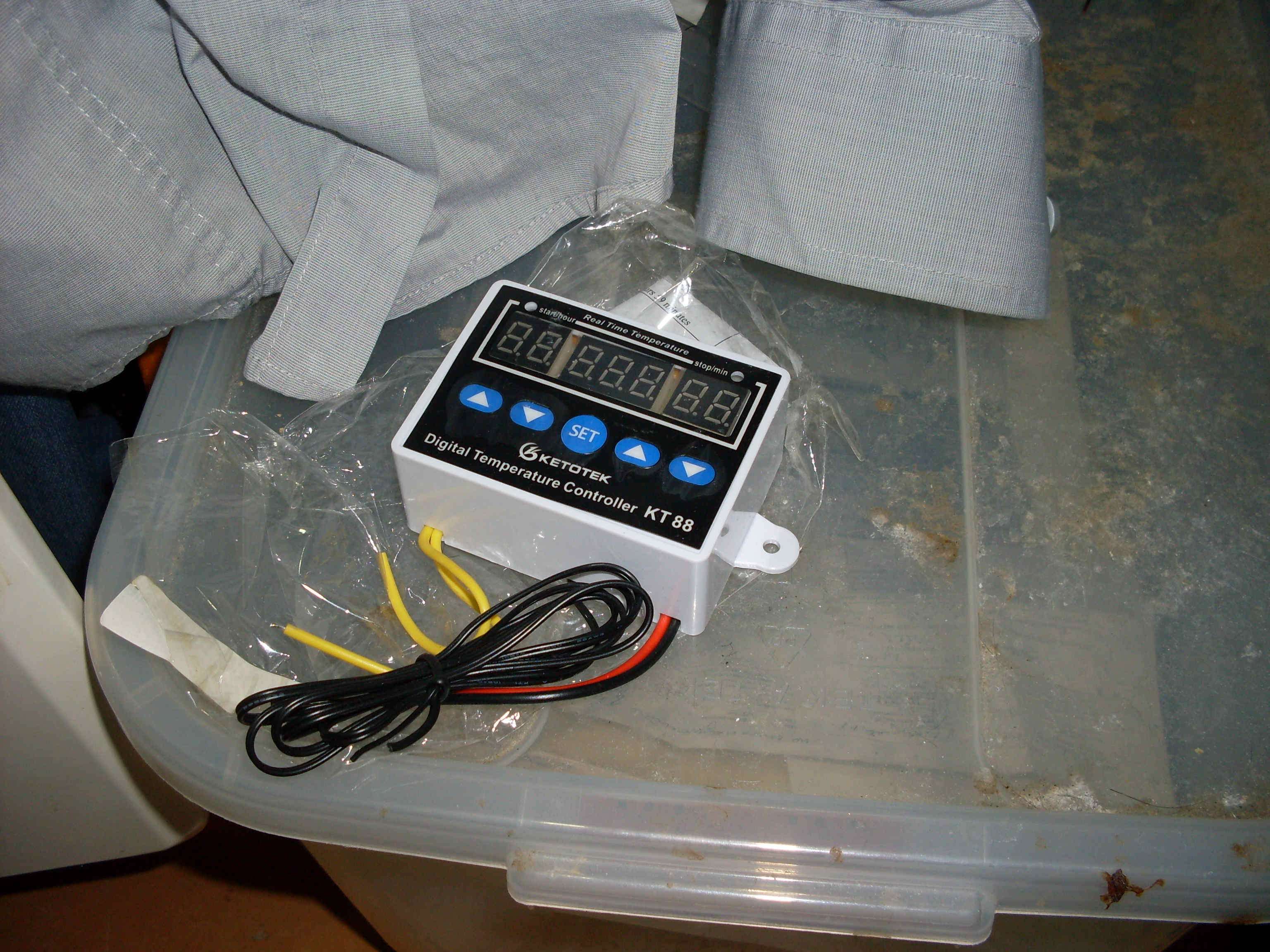 Также есть терморегуляторы - один куриный для инкубатора, мне конечно не подошёл, потомучто работает на нагрев. А второй работает и на нагрев и на охлаждение, но у него проводки тонкие боюсь, что на 220в не пойдет. Только на 12 вольт. Ну посмотрим, попробуем, надеюсь не сгорим.