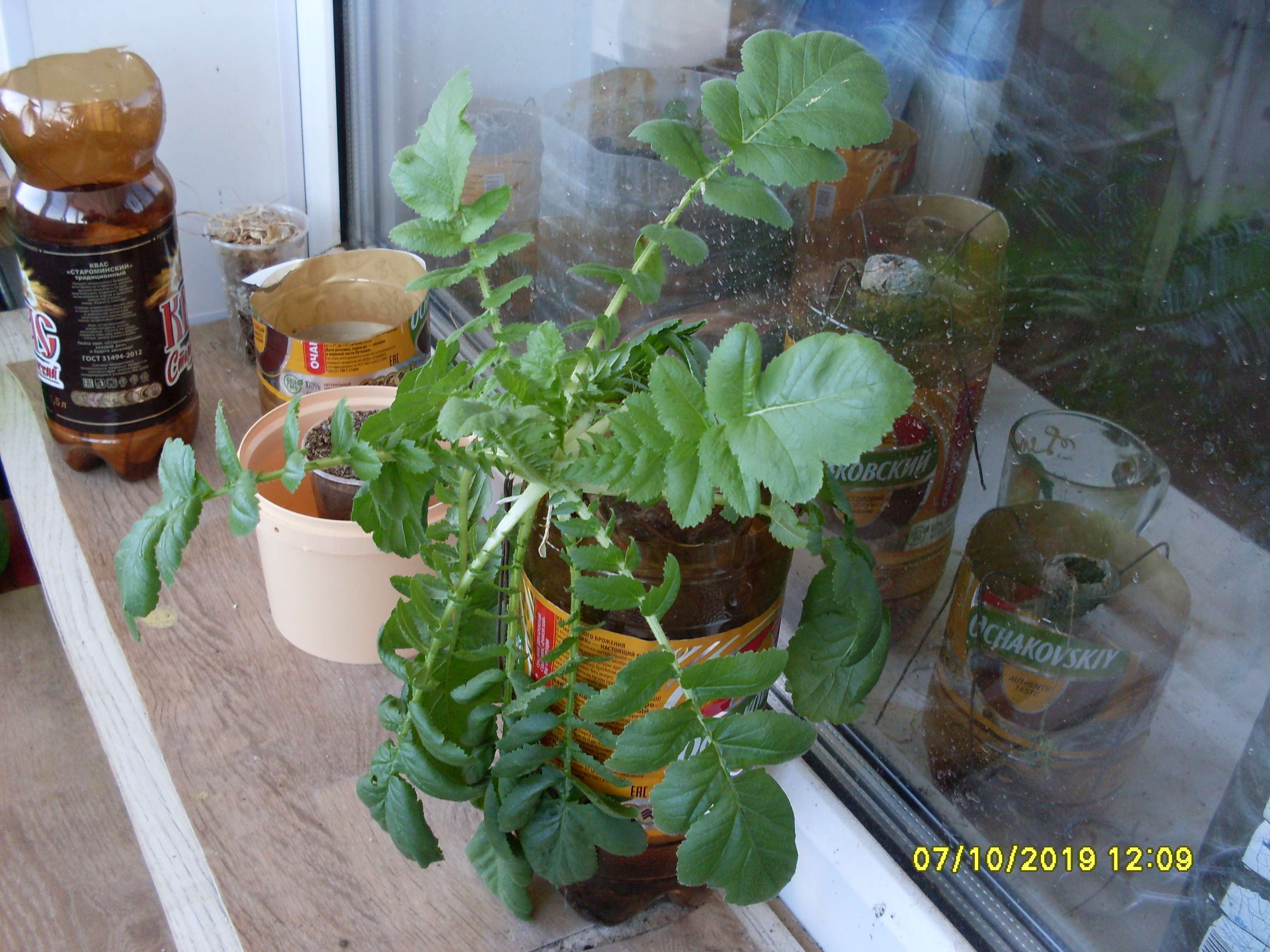 Это хрен Дайкон. Рос на гидре 1 год. И сейчас почемуто сдох. Может обиделся что я ему ботву в пучок связал... А может заболел, не знаю. Рядом перцы растут, в этом-же тазике и ничё